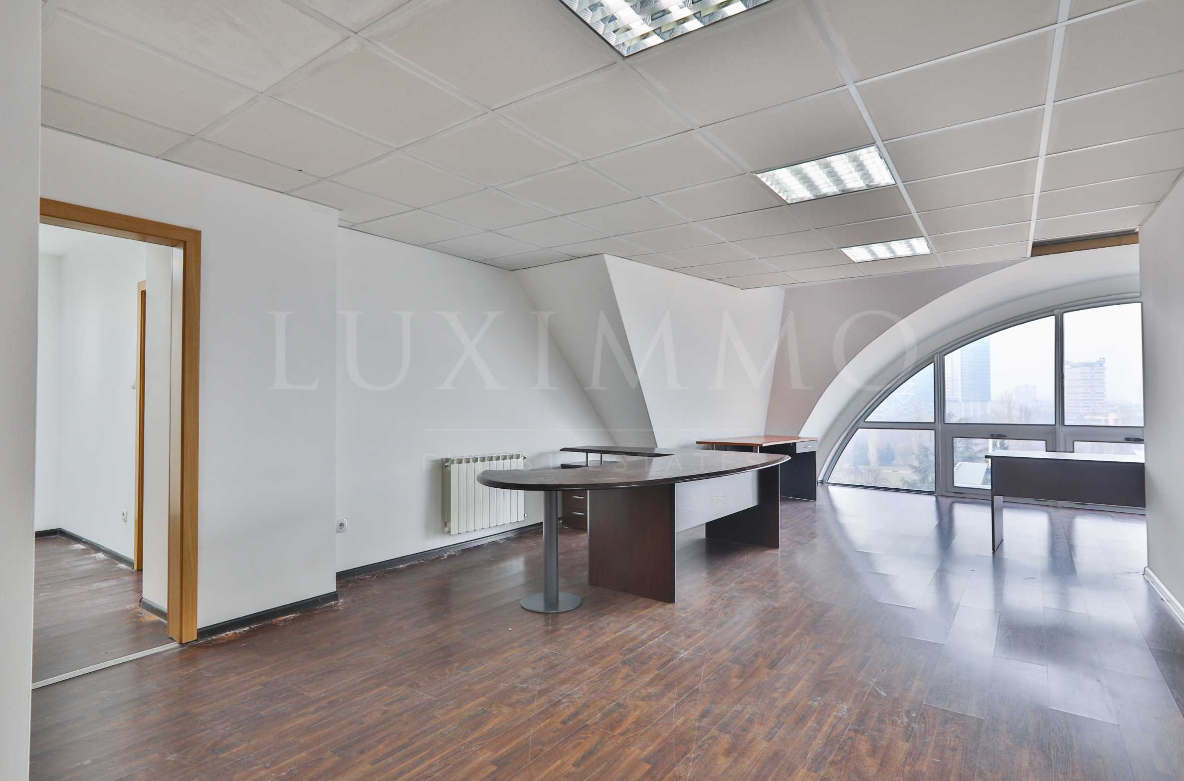 Офис със светли помещения в бизнес сграда до мол Парк Център София и хотел „Хемус”. На метри се намира метростанция "Европейски съюз" и големите столични булеварди - „Арсеналски” и „Черни връх”. Имотът е част от сграда с Разрешение за ползване от 2009 г., разполагаща с луксозни общи части, контролиран достъп и денонощна охрана 24/7. Районът е отлично развит и предлага бързи транспортни връзки с отделни точки от града.
