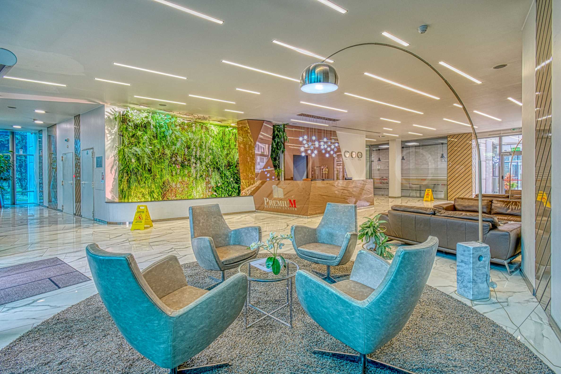 Офисът е разположен на шести етаж със следното разпределение: приемна, рецепция, кухня, складово помещение, дванайсет отделни кабинета с различен капацитет / между 3-8 работни места в помещение/. Офисът е разположен на цял етаж със самостоятелен санитарен възел.