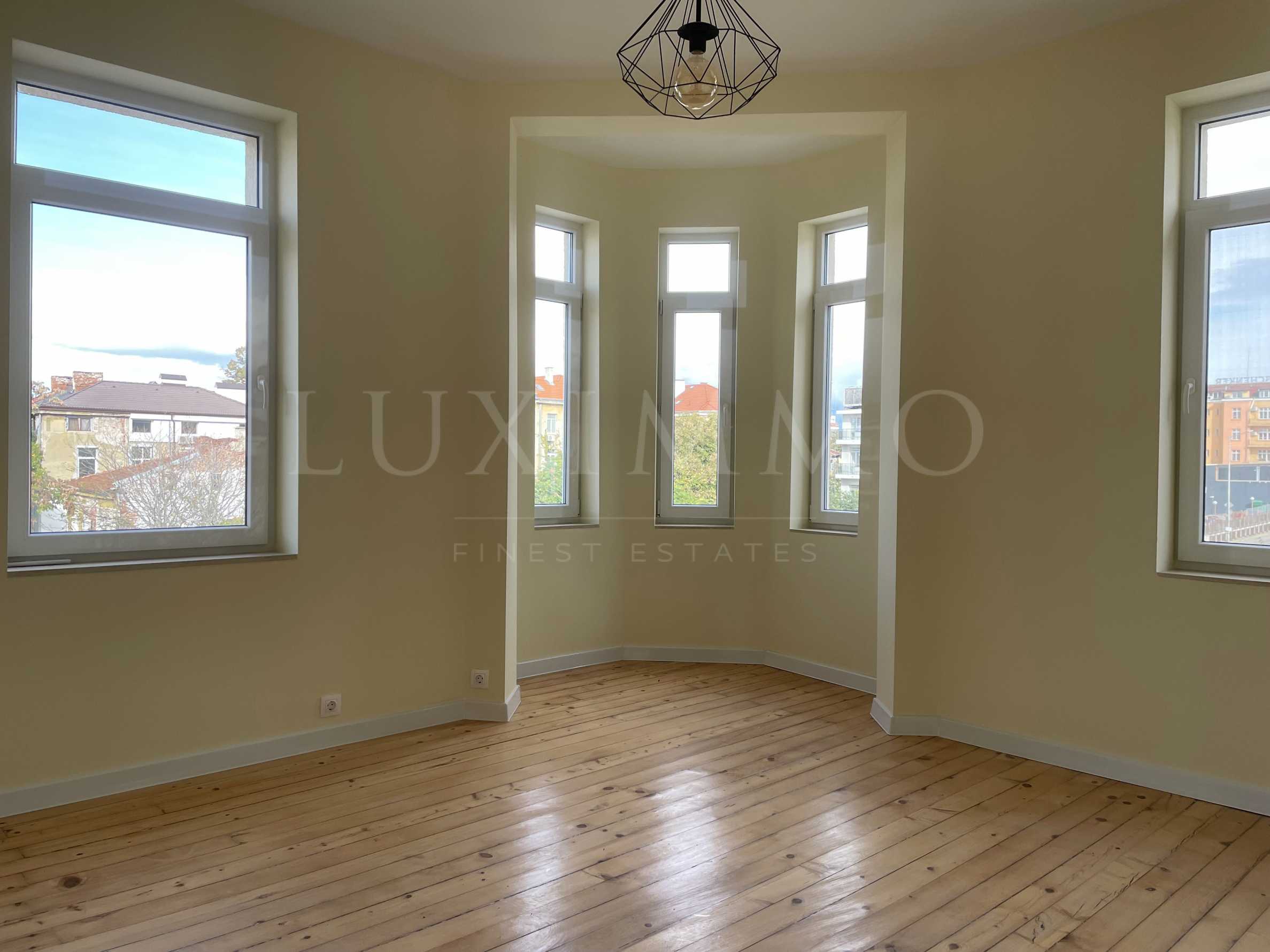 Имотът е след основен ремонт, разположен на 2-ри етаж в санирана и реновирана сграда от средата на миналия век. Състои се от коридор, три просторни и светли помещения, отделна оборудвана кухня, два бани балкон.