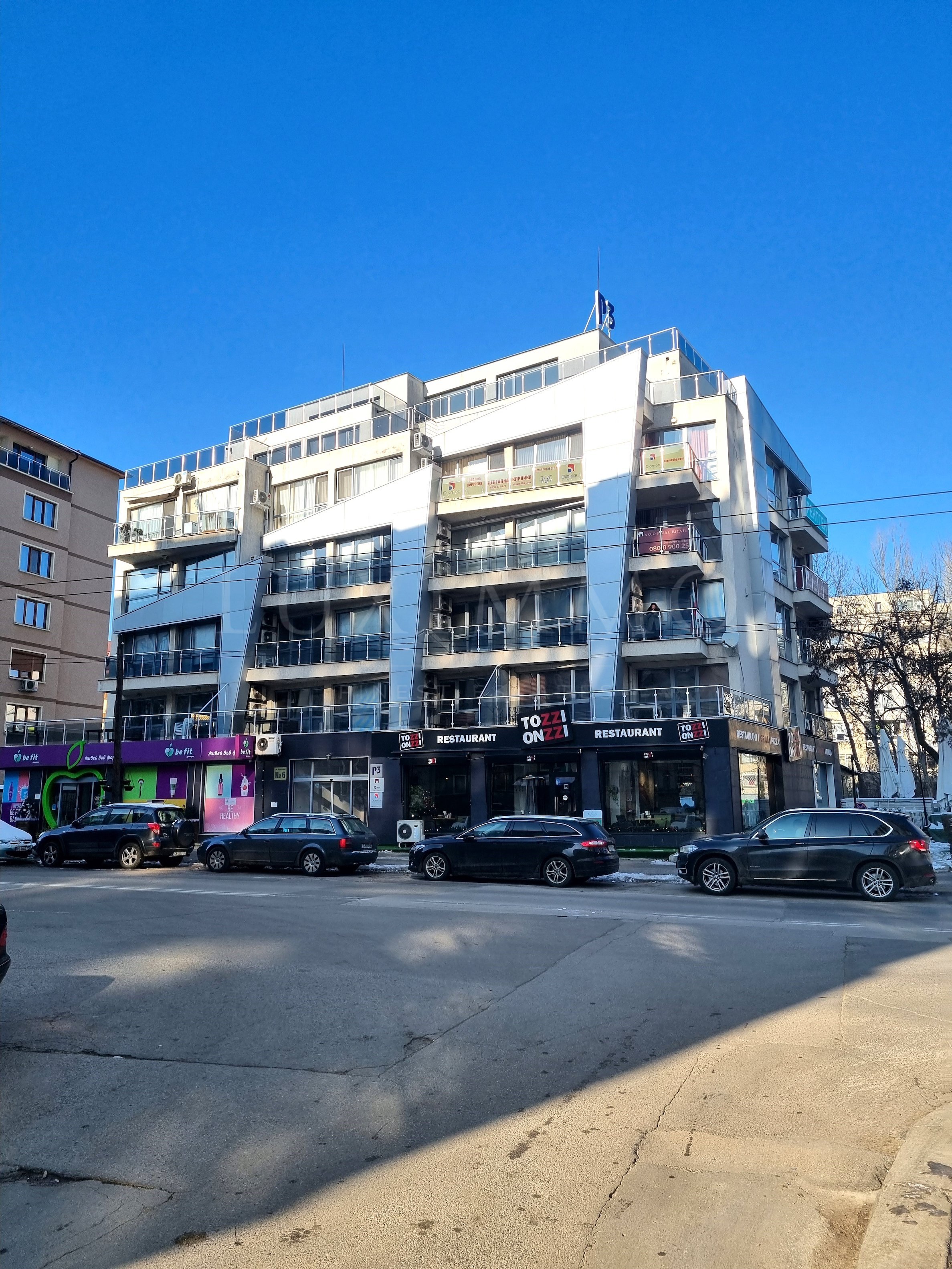 Сградата е в отлично състояние с поддържани общи части два асансьора, които имат контролиран достъп до имота с чип. На партерно ниво са разположени магазин и ресторант.