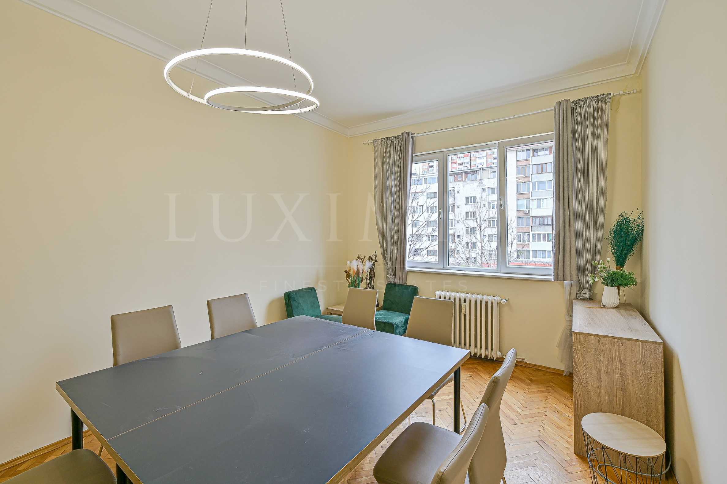 Състои се от стая за срещи, работно помещение, кухненски бокс, зона за хранене, кабинет, баня с тоалетна и тераса. Светъл и приветлив.