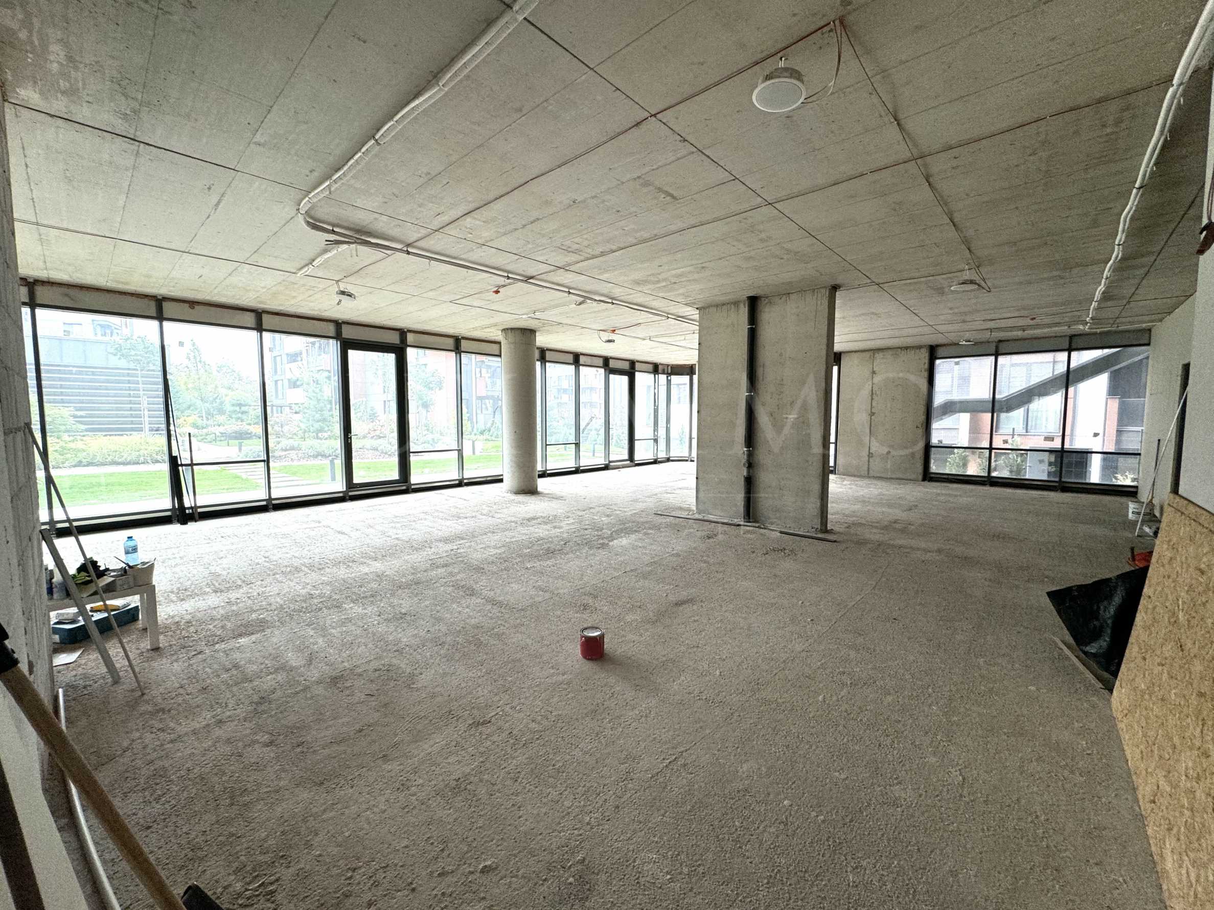 Помещението е с обща площ 445 кв.м, с френски прозорци и изобилие от естествена светлина. Пространството е функционално и разпределено така, че да отговаря на различни бизнес потребности – от корпоративен офис до студио за услуги. Офисът е необзаведен, което предоставя възможност за персонализиране според Вашите нуждите.