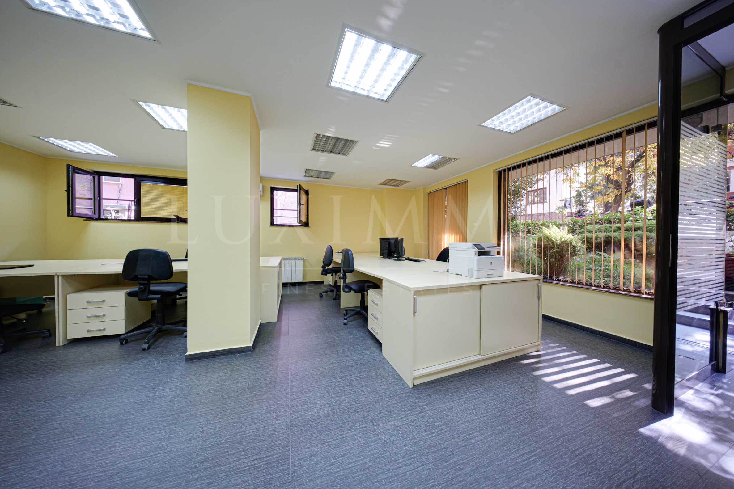Предлаганият офис се намира на партерен етаж от общо шест за сградата, с получено разрешение за ползване от 2006 г. Изложението е изток, юг и север. От имота се открива гледка към улица. Офисът е напълно обзаведен и е със следните довършителни работи: