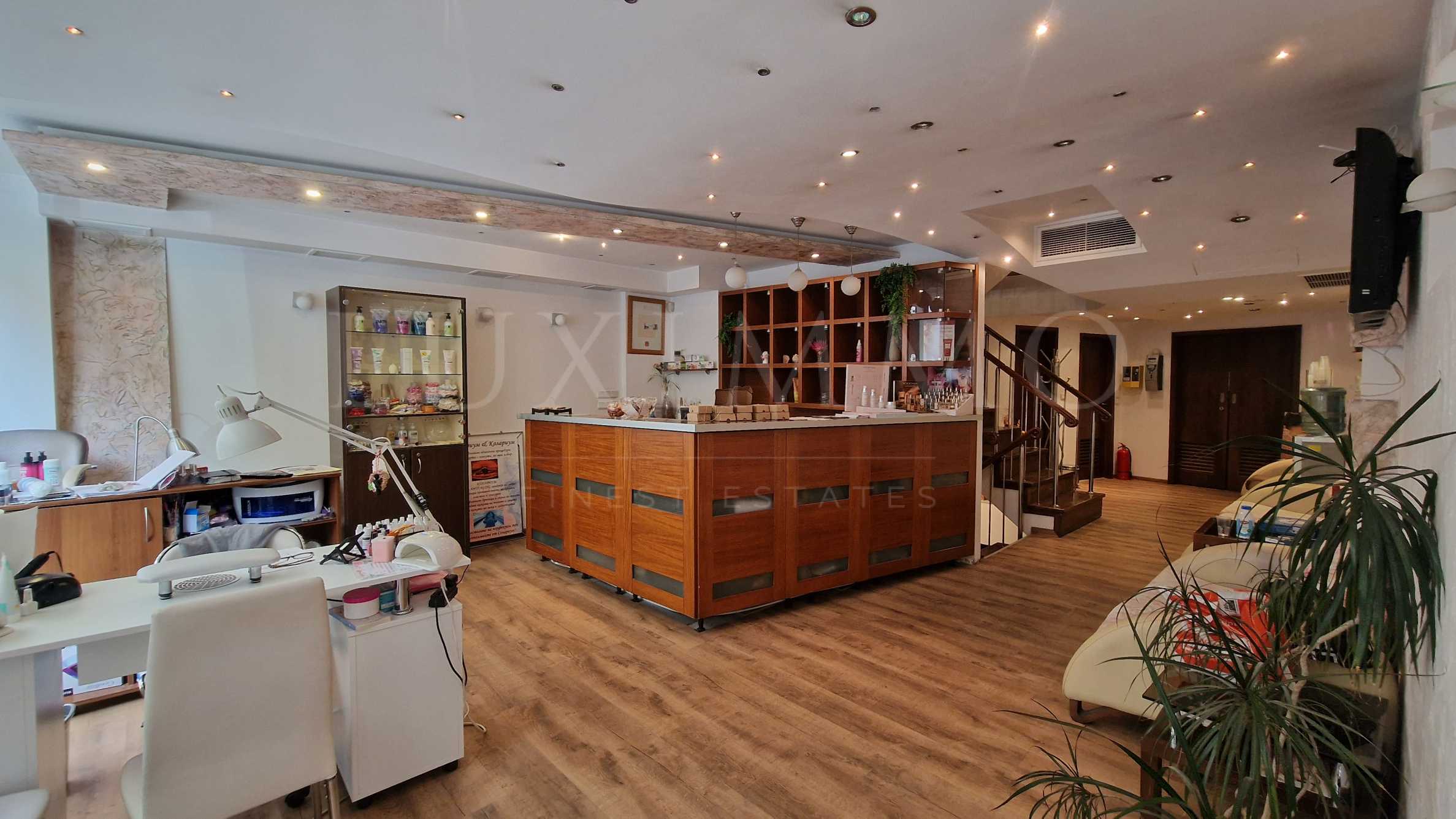 Големите витрини към улицата не просто осигуряват естествена светлина – те ви дават видимост и сцена в най-оживената и представителна част на града. Вътрешното стълбище осигурява естествен поток и свързаност между нивата, а усещането за простор и престиж е осезаемо във всяко едно помещение.