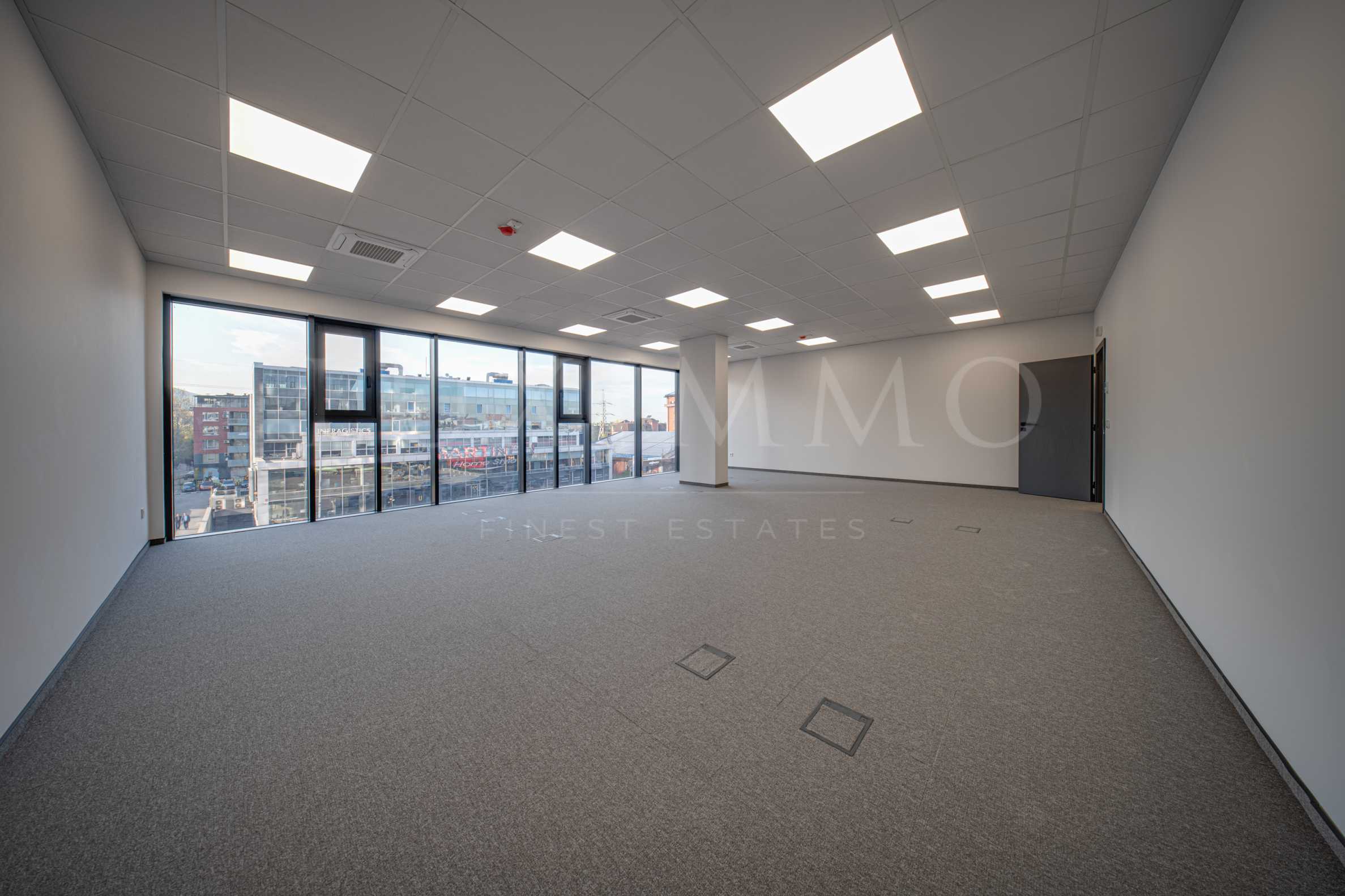 Представяме офис №4, състоящ се от голямо Open Space пространство, просторен отделен кабинет, рецепция/приемна и два санитарни възела. Има опция за обединение на всички помещения в едно. Застроената площ – 128.72 кв.м.