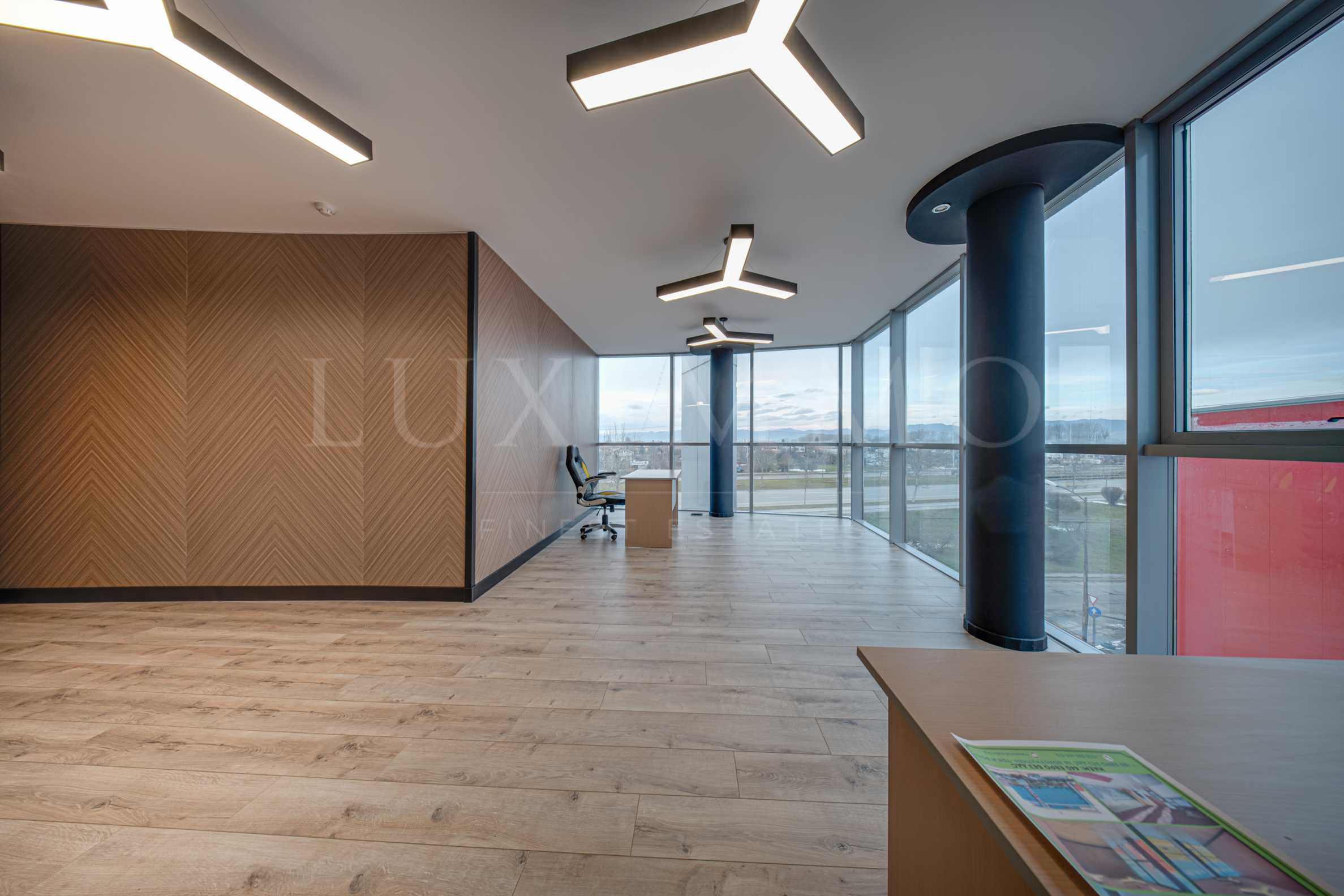 Офисът e със светло и просторно помещение, с възможност за конфигурация според нуждите на наемателя. Големите панорамни прозорци осигуряват допълнителна естествена светлина и създават усещане за простор и комфорт.