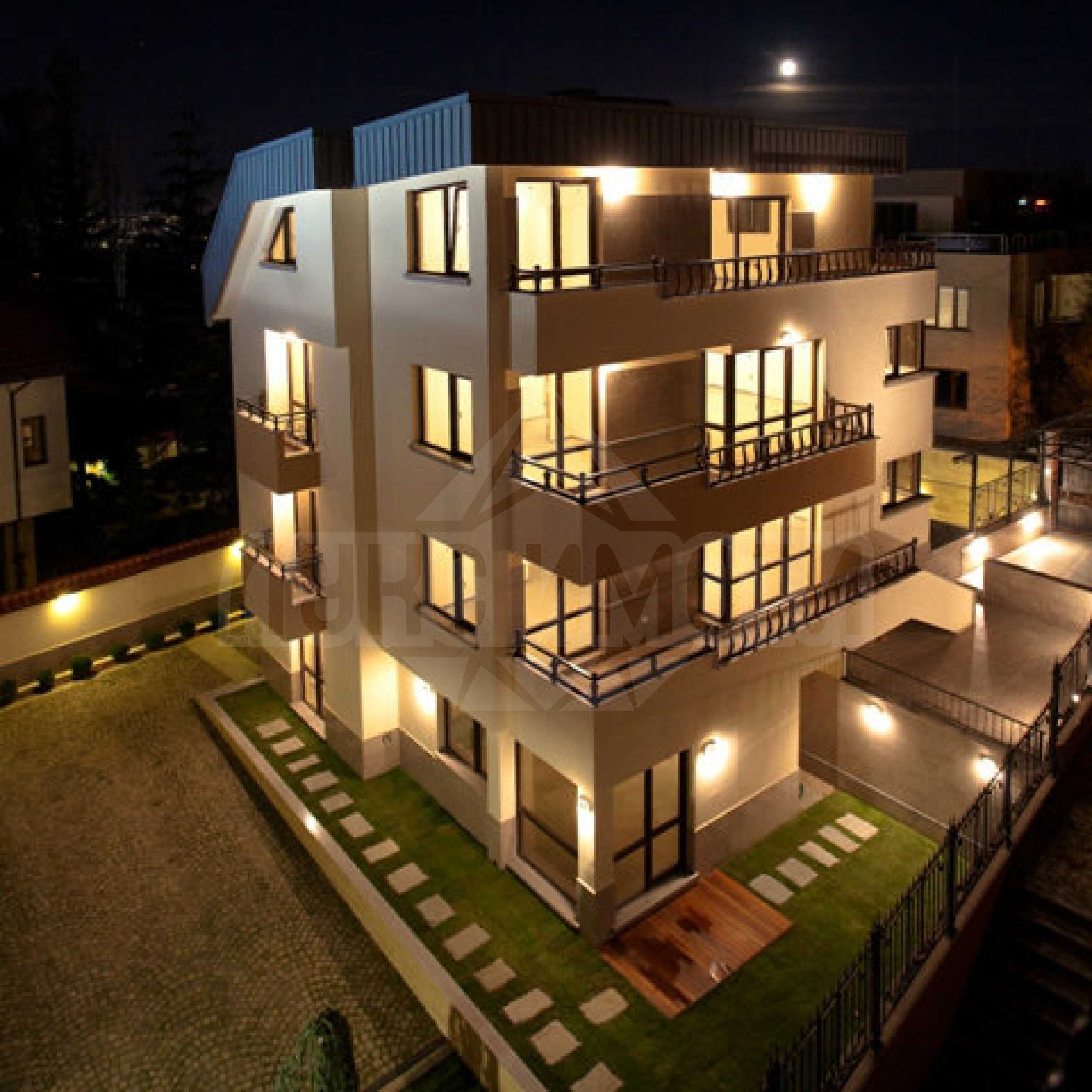 Комплексът се състои от 8 апартамента с площ от 97.54 до 130.64 кв.м. Жилищата са разположени по едно на етаж, което осигурява уединение и самостоятелност на всяко от тях.