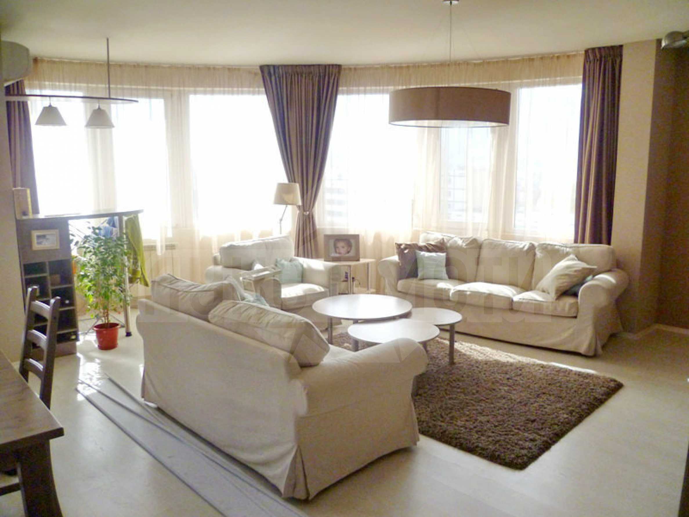Апартаментът е качествено и напълно обзаведен. В хола е поставен 46” LCD телевизор – "Phillips". Кухнята е напълно оборудвана с вградени уреди от висок клас. Настилките са ламинат и гранитогрес. Отоплението е централно, а в хола и в една от спалните са инсталирани климатици.