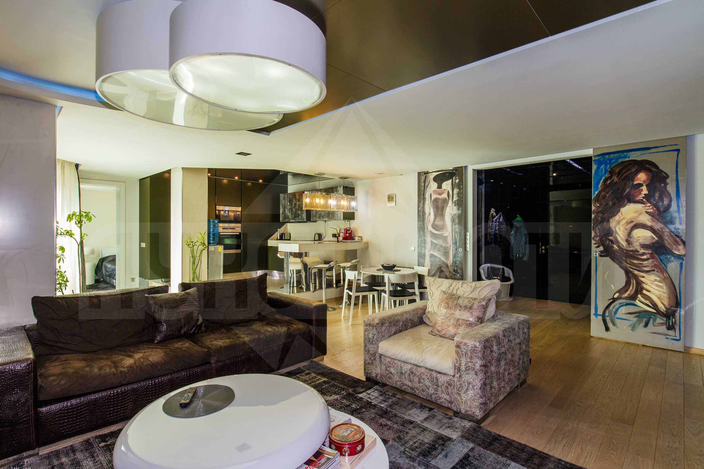 Жилището се отдава луксозно обзаведено и оборудвано, формирайки изключително елегантна и стилна атмосфера, с артистични акценти внасящи настроение. На разположение на бъдещите наематели ще бъде всичко необходимо за тяхното уединение и удобство: