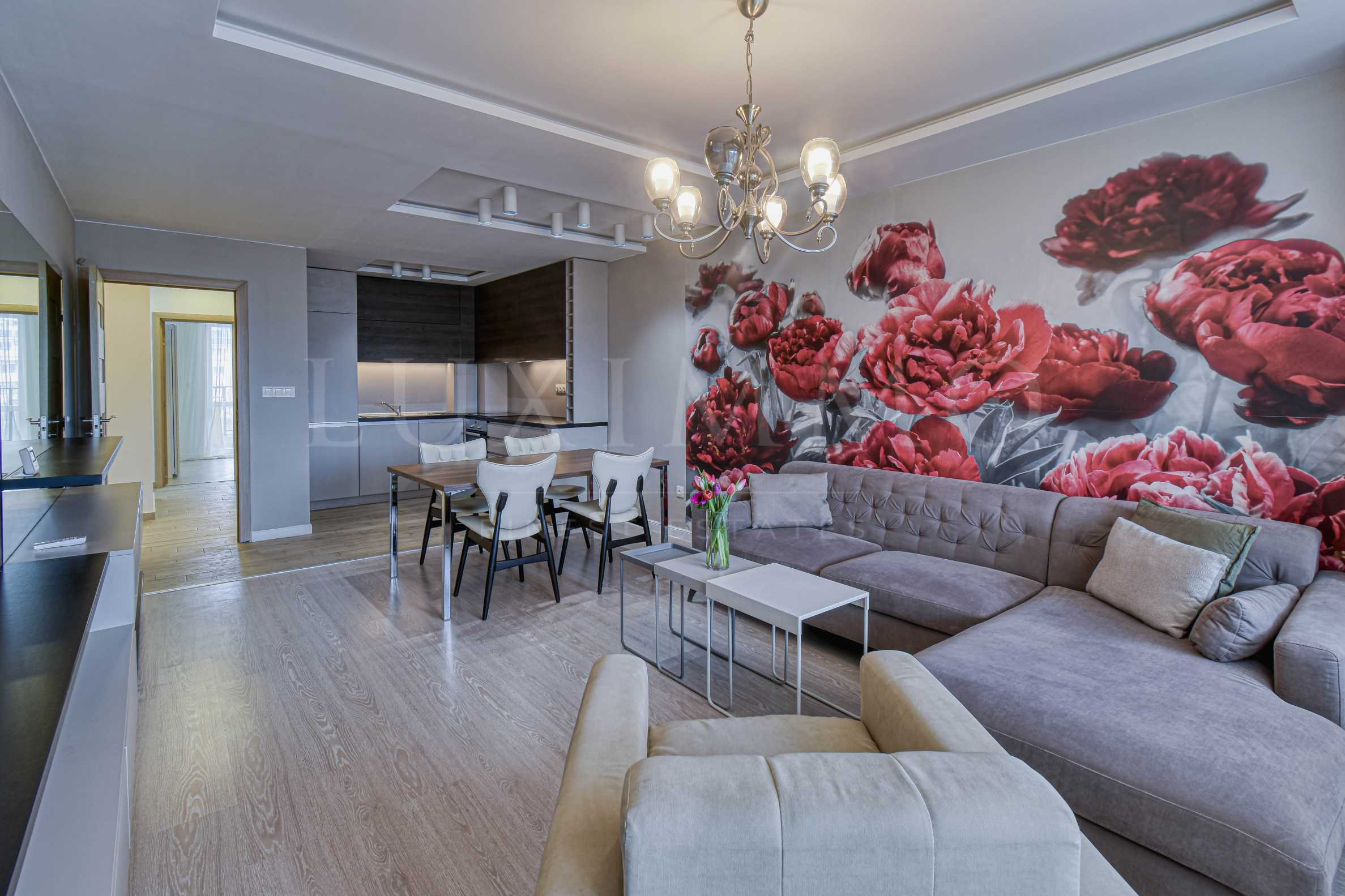 Апартаментът разполага с просторна всекидневна с прекрасна гледка към Витоша, голяма и светла спалня, уютна детска стая, баня с тоалетна, отделна тоалетна и коридор. .