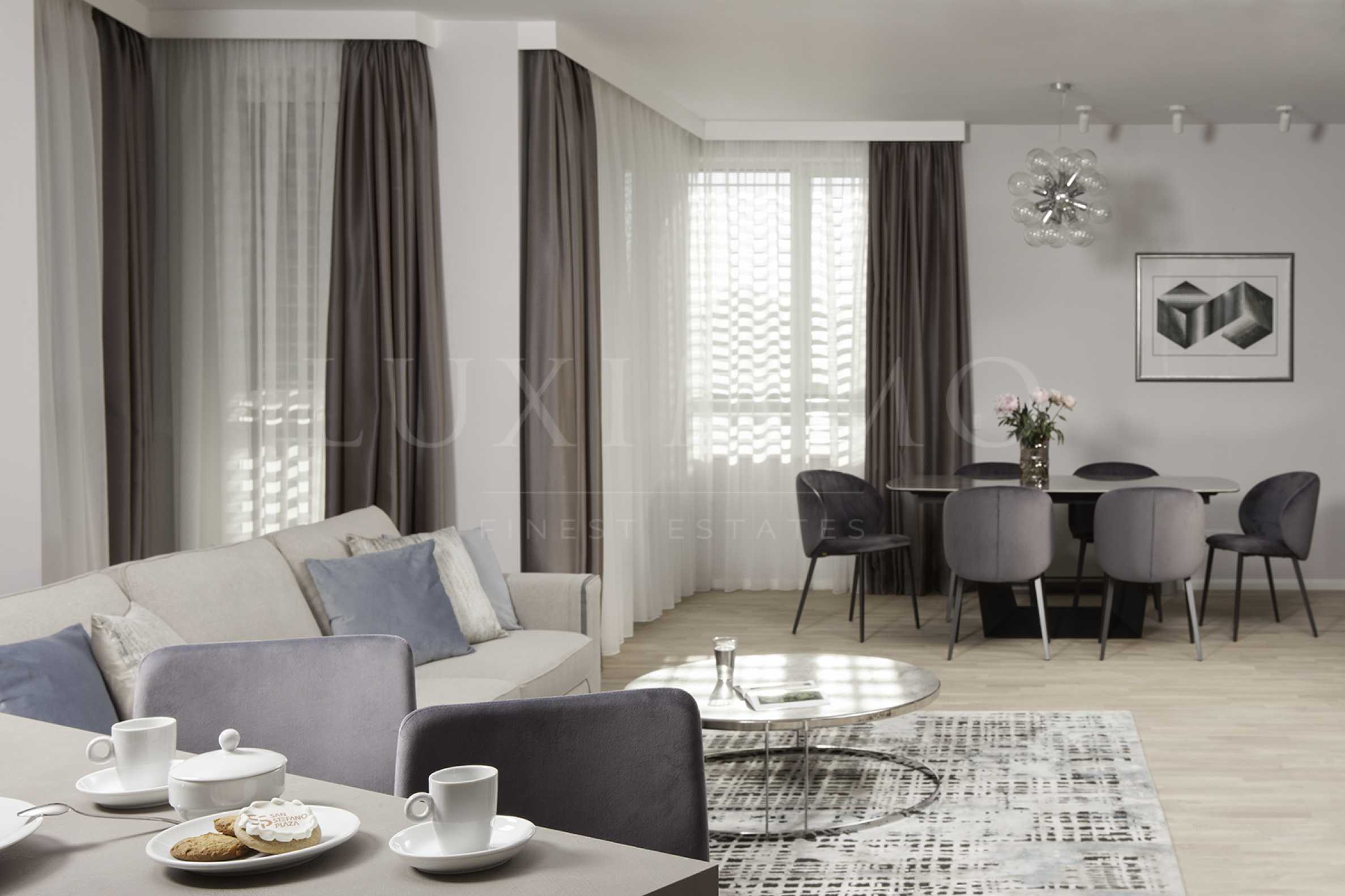 Дизайнерски тристаен апартамент с паркомясто и тераса в комплекс от затворен тип, разположен в един от най-красивите столични райони - Докторски паметник. Ситуиран на 150 м. от Докторска градина и Парк Борисова градина . На пешеходно разстояние са и някои от основните забележителности на града от културен, архитектурен и исторически характер, както и Народната библиотека „Св. Св. Кирил и Методий“, галерии, театри, посолства и Националният стадион „Васил Левски“. Сред предимствата на локацията е и фактът, че е само на 20 минути от „Летище София“, до което се стига с линия 1 на столичното метро.