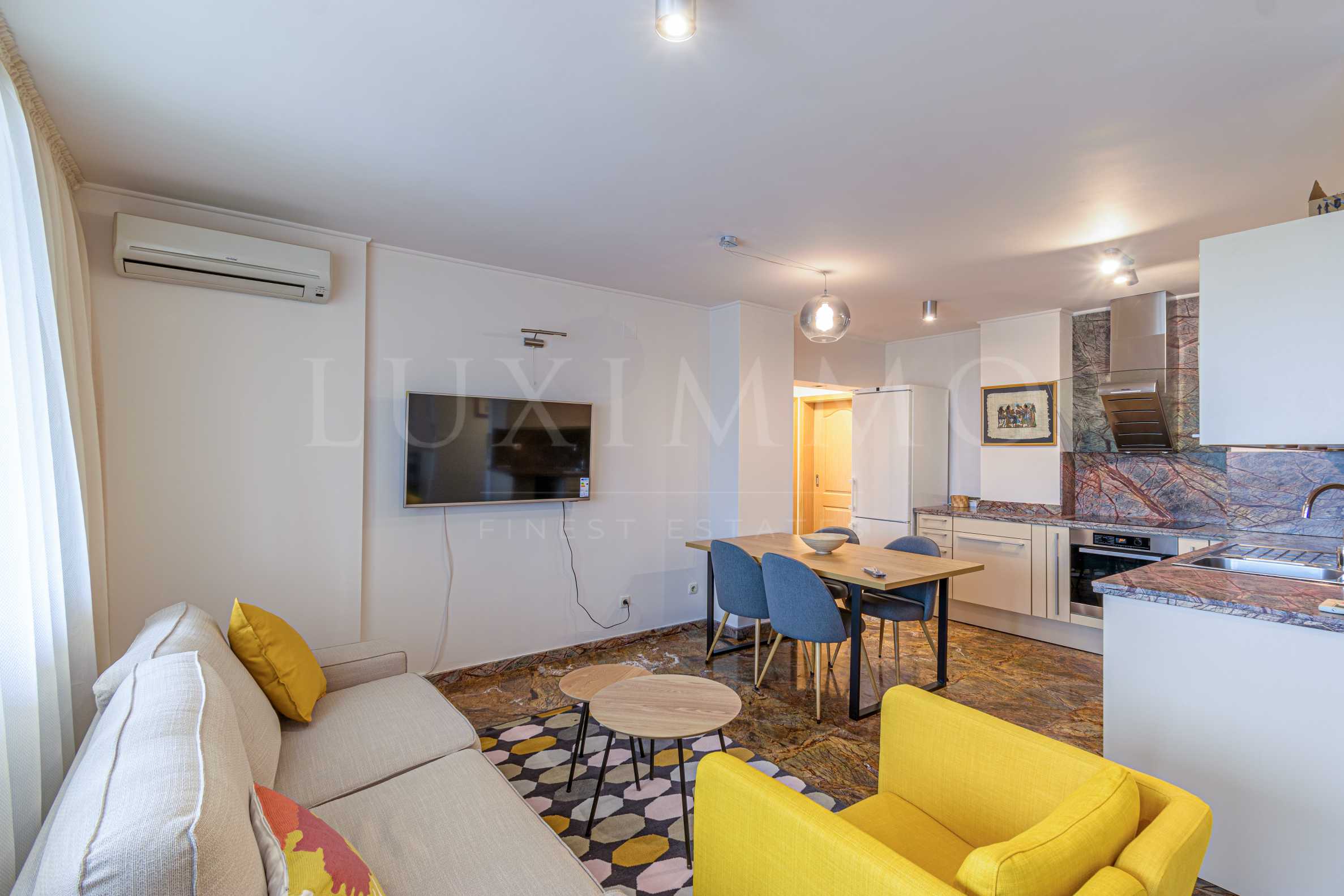 Имотът е разположен на метри от Южен Парк, бул. Витоша и НДК. Обзавеждането е модерно, функционално, луксозно и създава чувство за уют. Западно изложение.