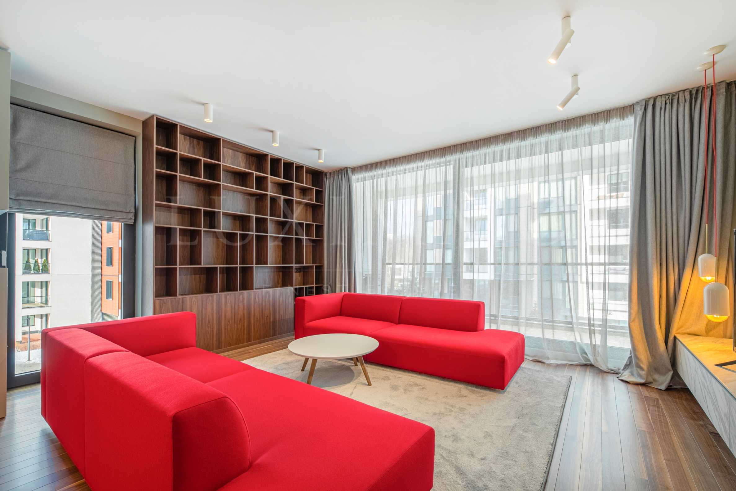 Жилището заема трети от общо седеметажнажна сграда, с изложение юг/запад/изток. От имота се разкрива панорамна гледка към вътрешния двор на комплекса. Апартаментът е с площ от 150 кв.м., застроена площ 125 кв.м Предлага се качествено завършен: