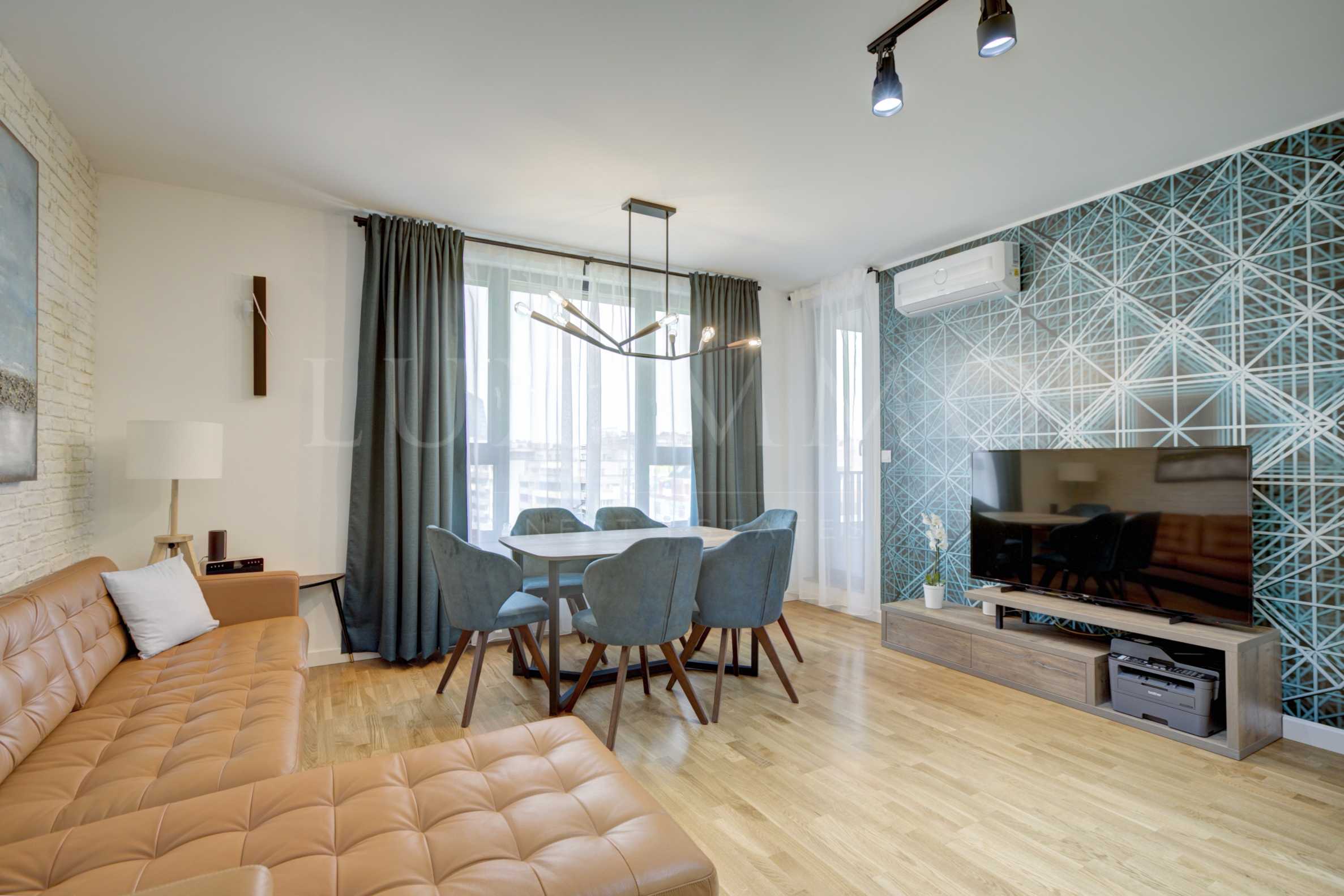 Имотът е със следното функционално разпределение: входно антре, всекидневна с кухненски кът и излаз на балкон, тоалетна, баня с тоалетна, родителска спалня с излаз на балкон, мокро помещение/килер и детска стая с излаз на балкон. Предлага се с абсолютно цялото обзавеждане и оборудване, включващо вградени кухненски електроуреди (съдомиялна, керамични котлони, микровълнова фурна, печка за готвене, хладилник, фризер), система за домашно кино, климатици във всяка стая, мека мебел и аксесоари от КАРЕ.