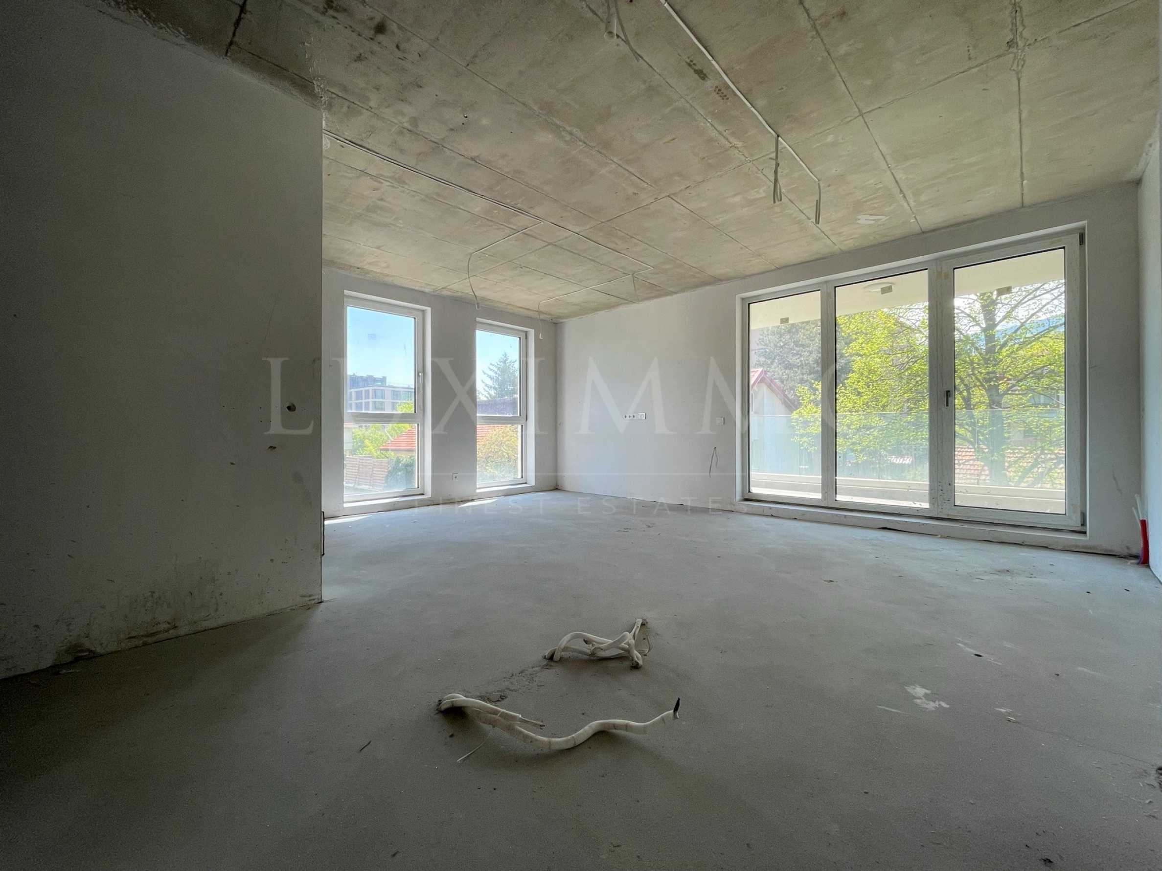 Жилището се състои от просторен южен хол, с гледка към Витоша планина, две източни спални, просторно антре, баня с тоалетна, отделна тоалетна и килер. Жилището има два балкона, един южен към хола и един източен за двете спални.