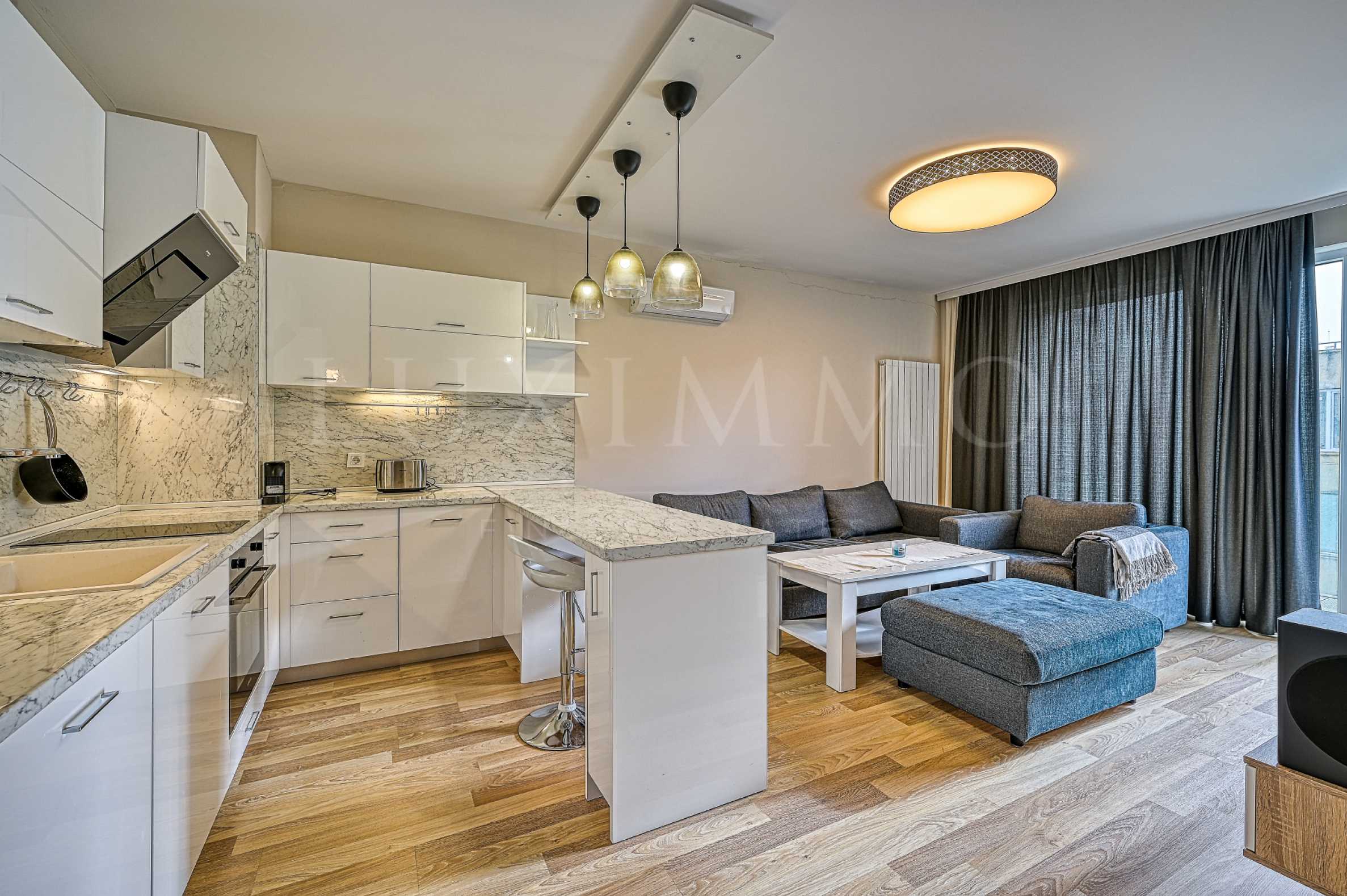 Апартаментът е разположен на трети жилищен етаж и е с югоизточно изложение, функционално разпределен, обзаведен с всичко необходимо за едно домакинство.