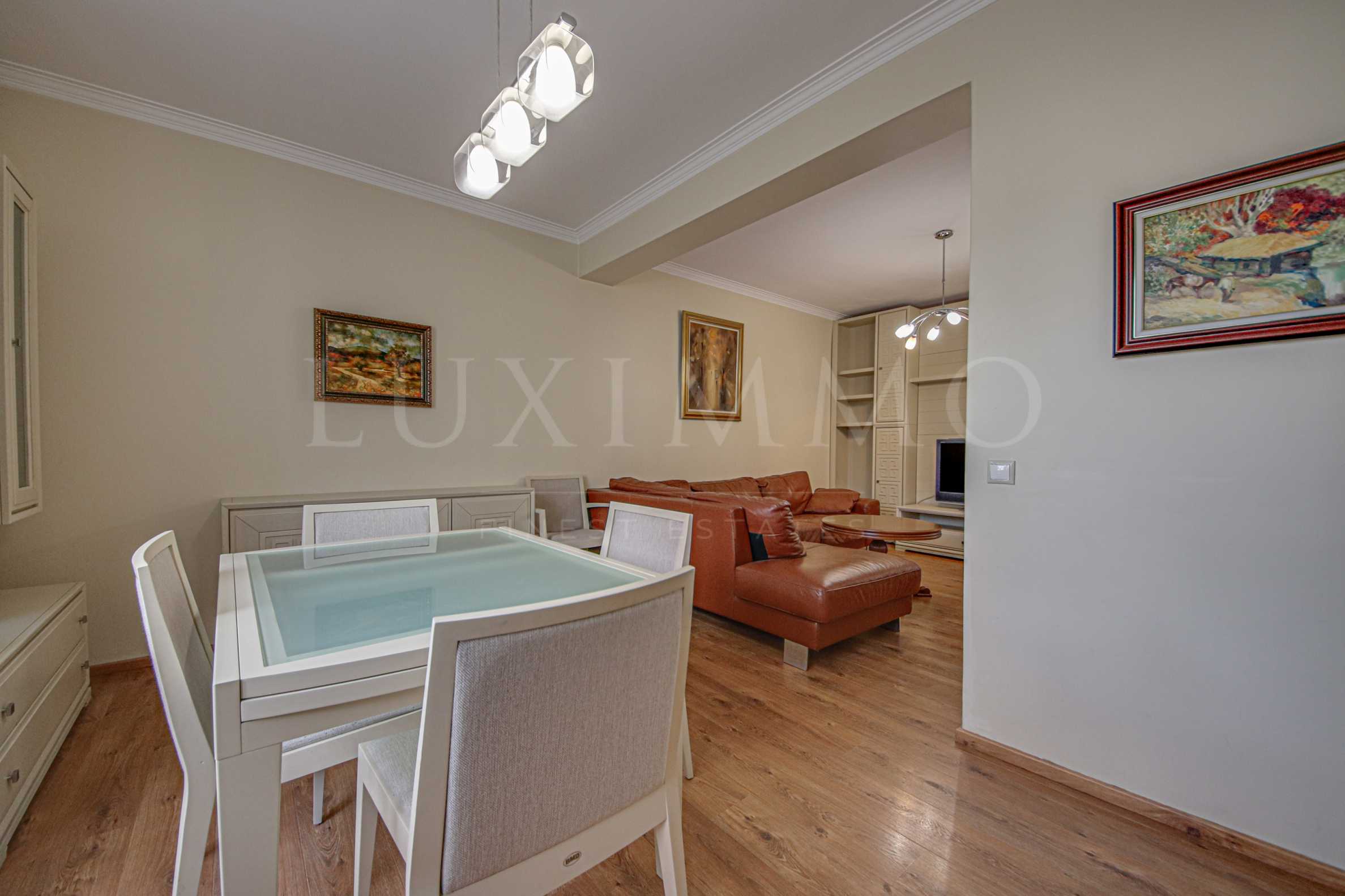 Напълно обзаведен тристаен апартамент под наем с гараж и парко място в кв. "Лозенец"
