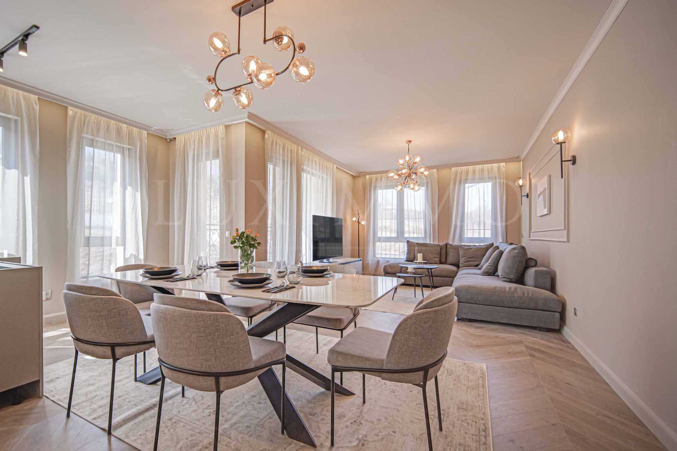 Представяме чисто нов тристаен апартамент под наем в кв. "Драгалевци". Имотът се намира в нов комплекс от затворен тип с контрол на достъп. Комплексът разполага с външен басейн и красиви гледки към зеленина и планината. Локацията предлага множество удобства и същевременно тиха и спокойна среда за живот. В района ще откриете малки магазини, хипермаркети, детски градини, училища, спортни центрове, салони за красота, спирки на автобуси и др.