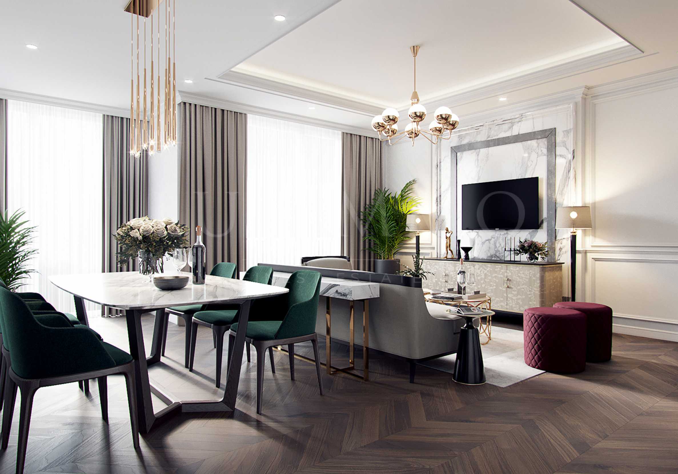 Апартаментът е разположен на партерен етаж от общо 11 и предлага 113.00 кв.м обща площ, от които 97.43 кв.м нетна площ и 15,57 кв.м общи части. Имотът създава усещането за къща в градска среда и се характеризира с просторни и светли помещения, с изложение северо-изток и юг.