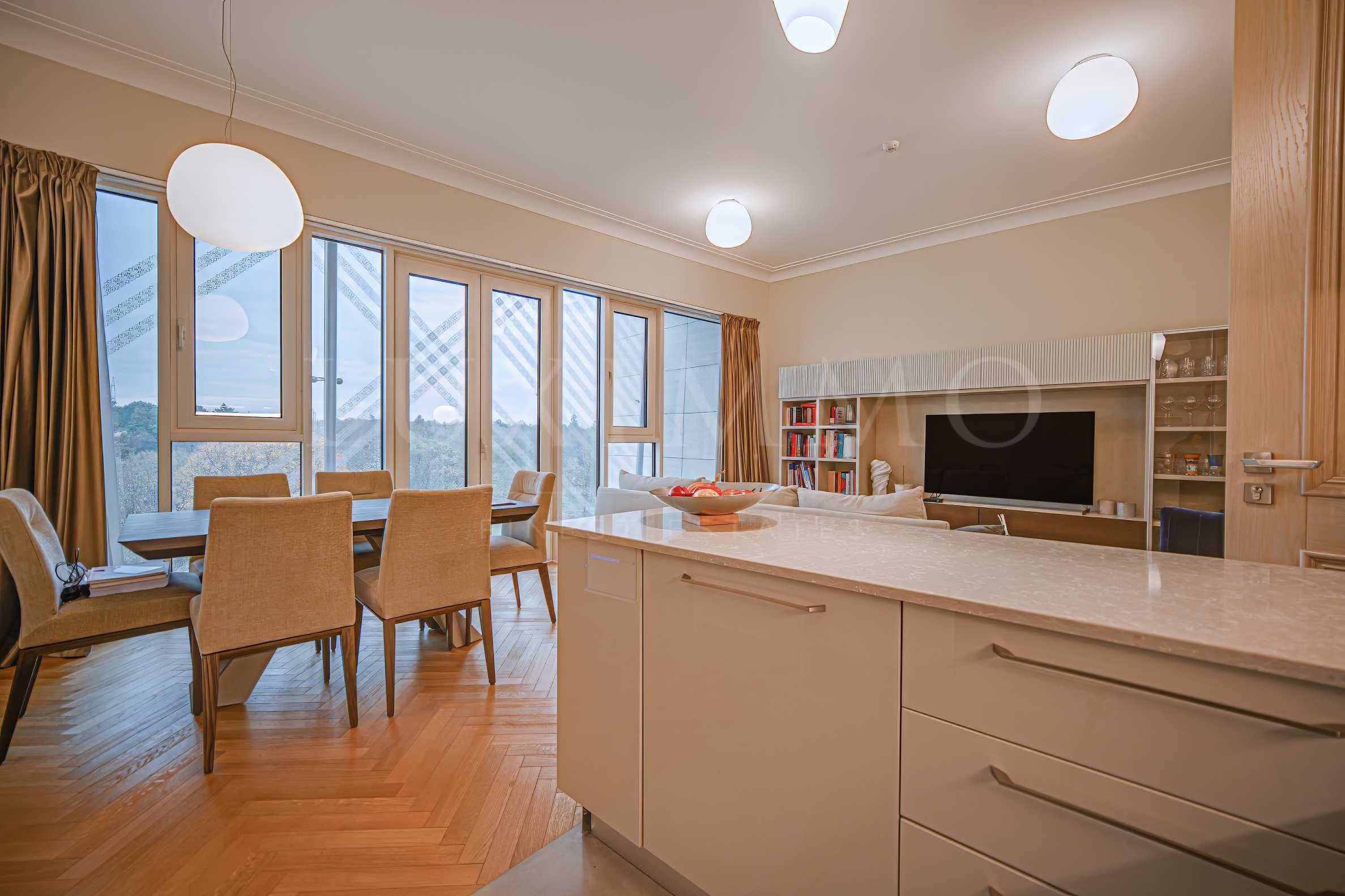С удоволствие представяме за продажба стилно обзаведен апартамент с две спални и 124 чиста жилищна площ, а с общите части 138 кв.м. Към имота принадлежи и парко място от 21,59 кв.м