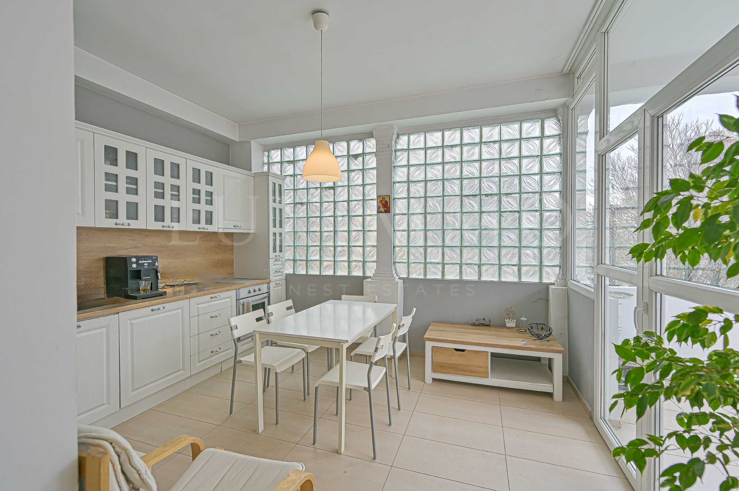 Имаме удоволствие да ви представим простарен апартамент със светли пространства и високи тавани, оборудвана кухня до Мол София и метростанция 'Опълченска'.