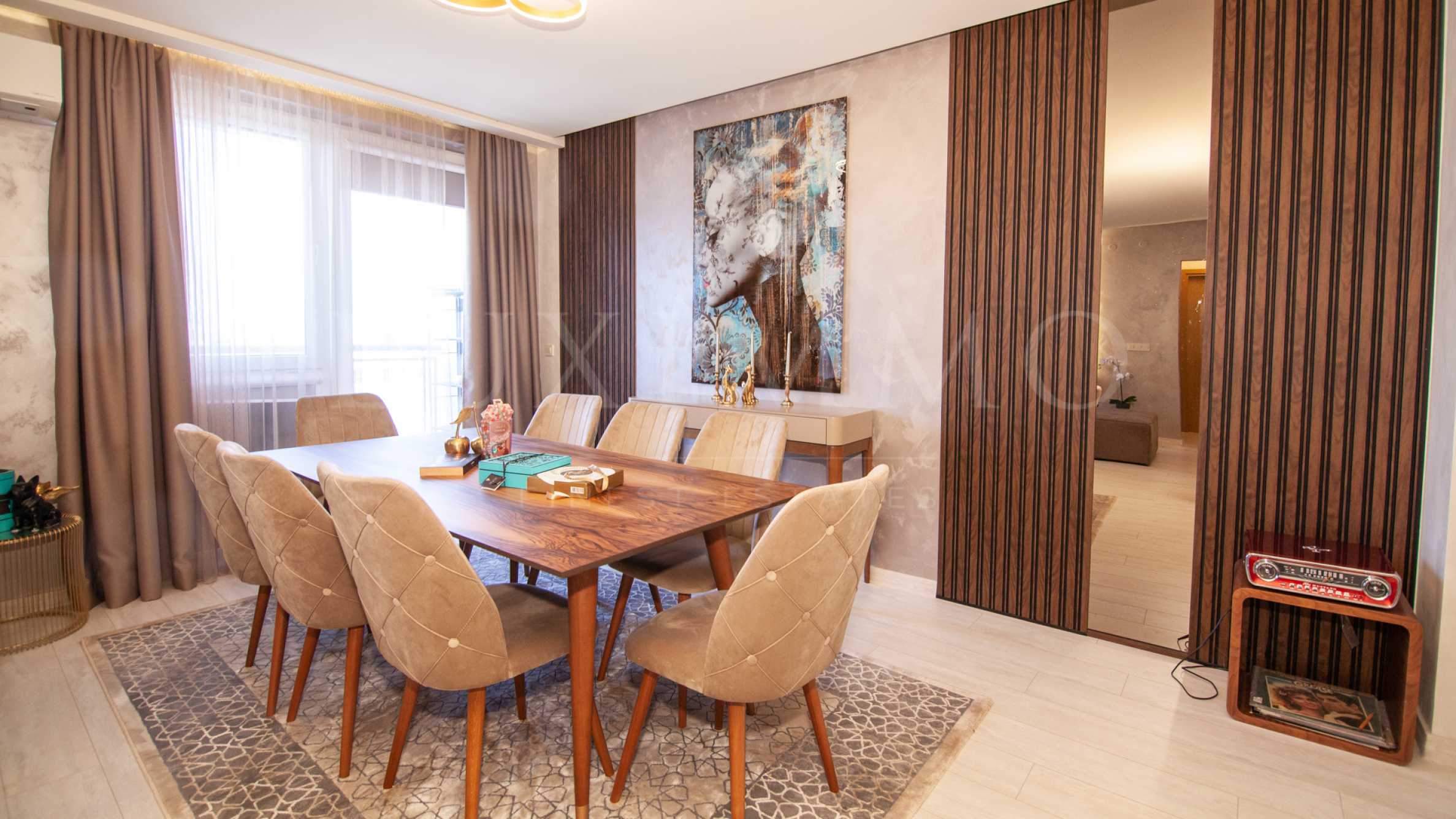Имотът с обща площ от 158 кв.м /застроена – 137 кв.м/ е ситуиран на 5-етаж от 7 в тухлена сграда от 2011 г. Изложението е запад – към вътрешната част на квартала и е много тихо.