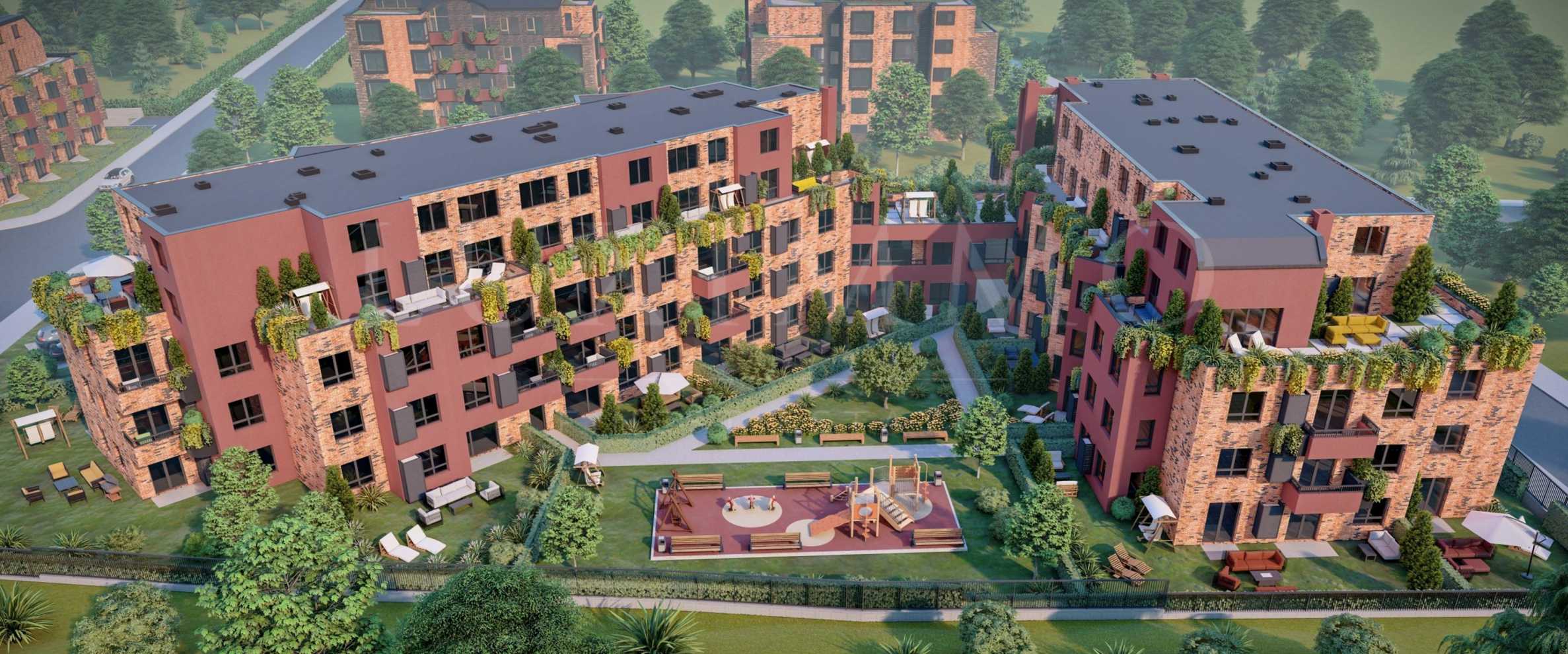 В концепцията на иновативния комплекс е заложено използването на естествени материали, озеленяването на фасадите, с контролиран растеж, без нужда от специални градинарски грижи - поддържана градина чрез автоматични, водоспестяващи поливни системи. Градините се изпълняват с вечнозелени, широколистни и иглолистни растения, което създава целогодишна зелена среда за собствениците. Вертикални градини към всяка тераса - с капково напояване и умно управление.