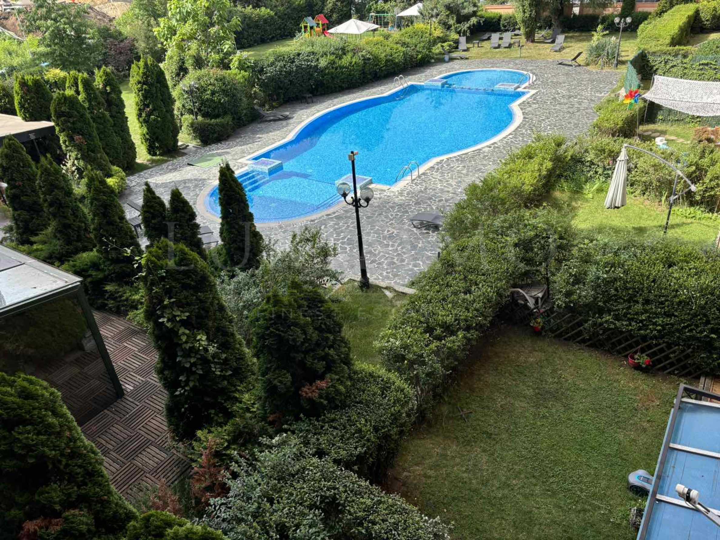 Комплексът е с модерна архитектура и озеленен, поддържан двор. Разполага със собствен редовно поддържан открит басейн, достъпен за живущите, както и действащ ресторант. С комуникативното си разположение, всяка точка на гр. София е на една ръка разстояние. В близост се намират спирки на градски транспорт, метростанция "Жолио Кюри", магазини, ресторанти, болници, фитнес и други.