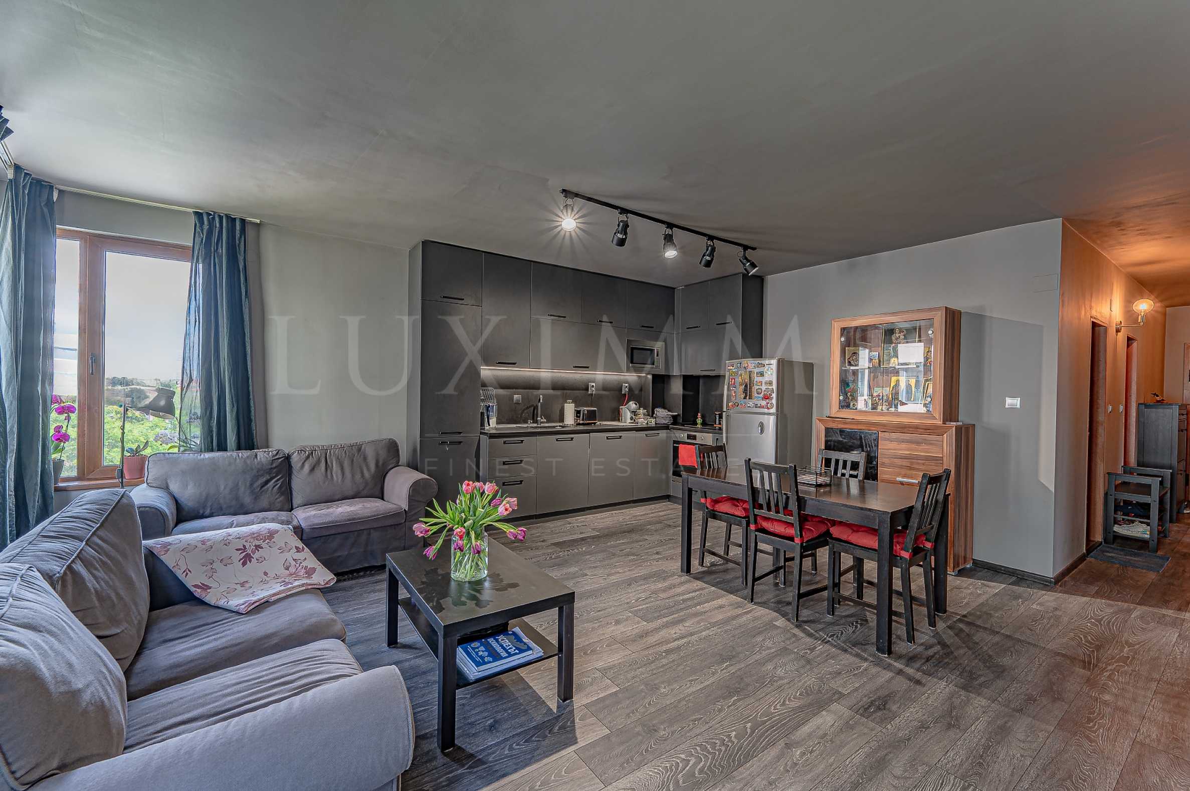 Апартаментът е просторен, напълно обзаведен и много уютен. Намира се на първи жилищен етаж над партера. Имотът е част от две малки сгради с ограничен достъп. Местоположението е на тихо и спокойно място за квартала, но в същото време близо до бул.България.