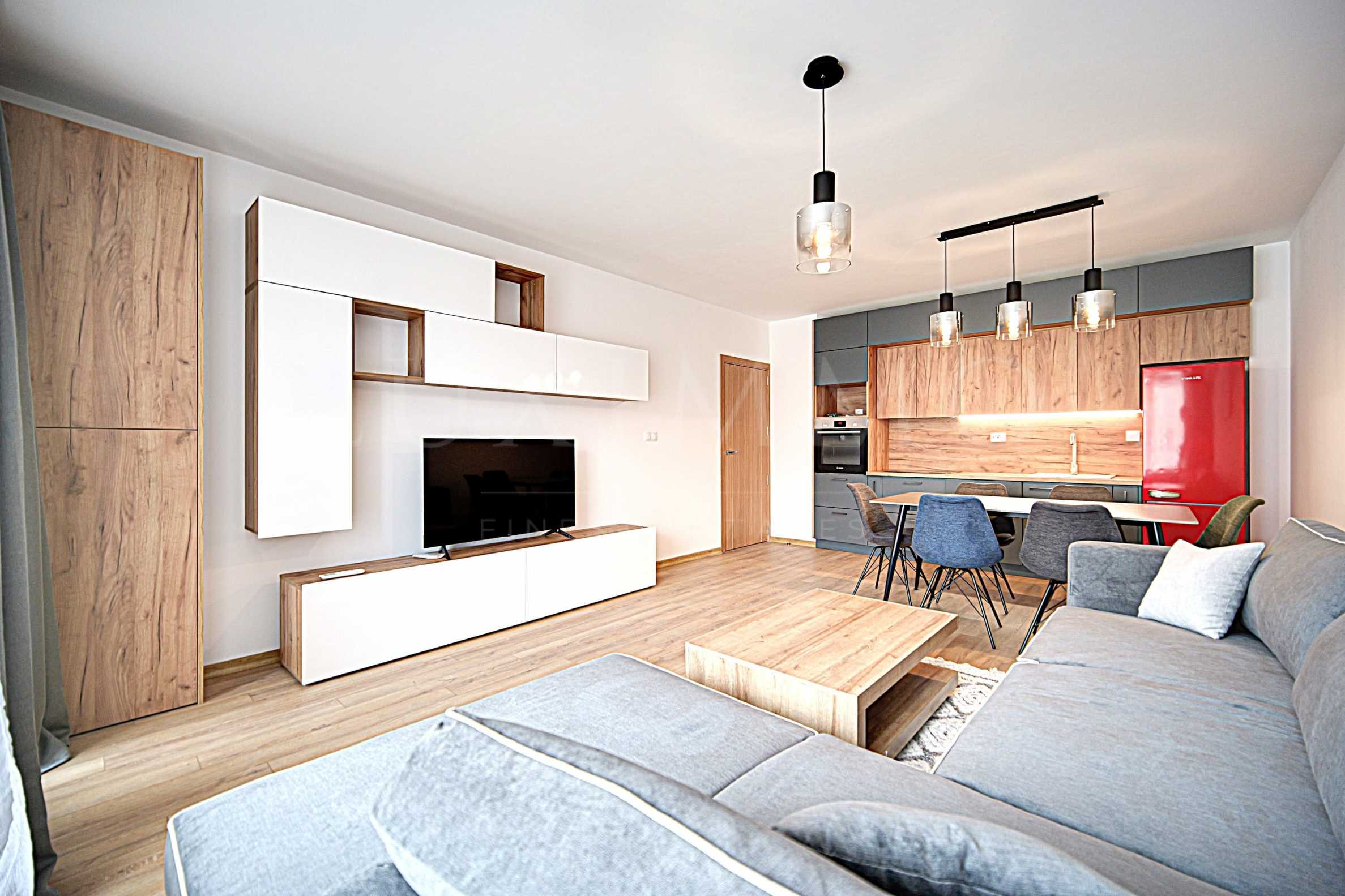 Имотът се предлага напълно обзаведен с: кухня (всички необходими електроуреди), климатик, перална машина, мека мебел, трапезна маса и столове, холна маса, телевизор, холна секция, легло, нощни шкафчета, скрин, гардероб, шкафове, аксесоари и др.