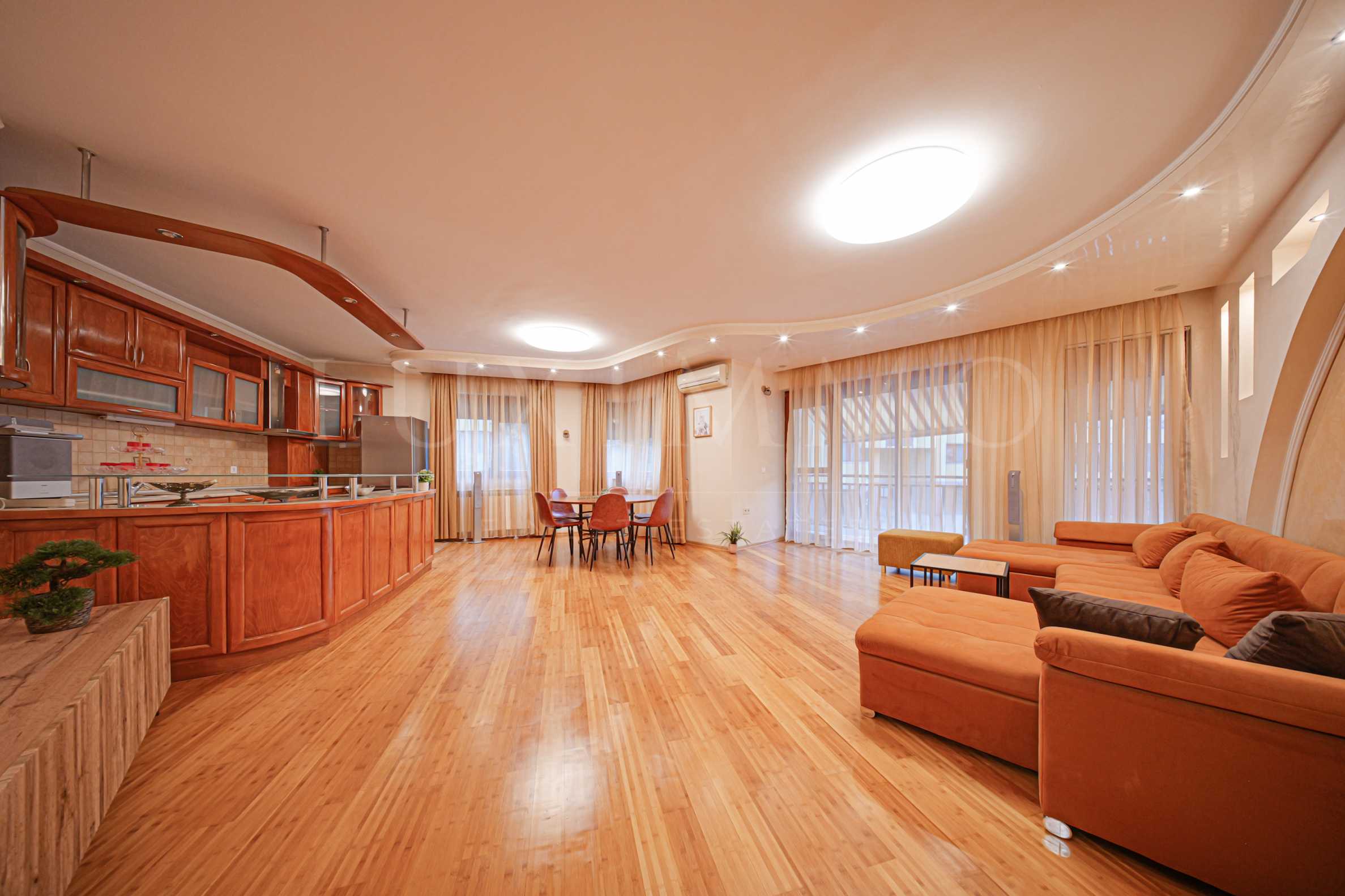Апартаментът е с южно изложение и се намира на 1-ви жилищен етаж, с площ от 145 кв.м. Имотът е реновиран, с качествено обзавеждане, след отличен ремонт.
