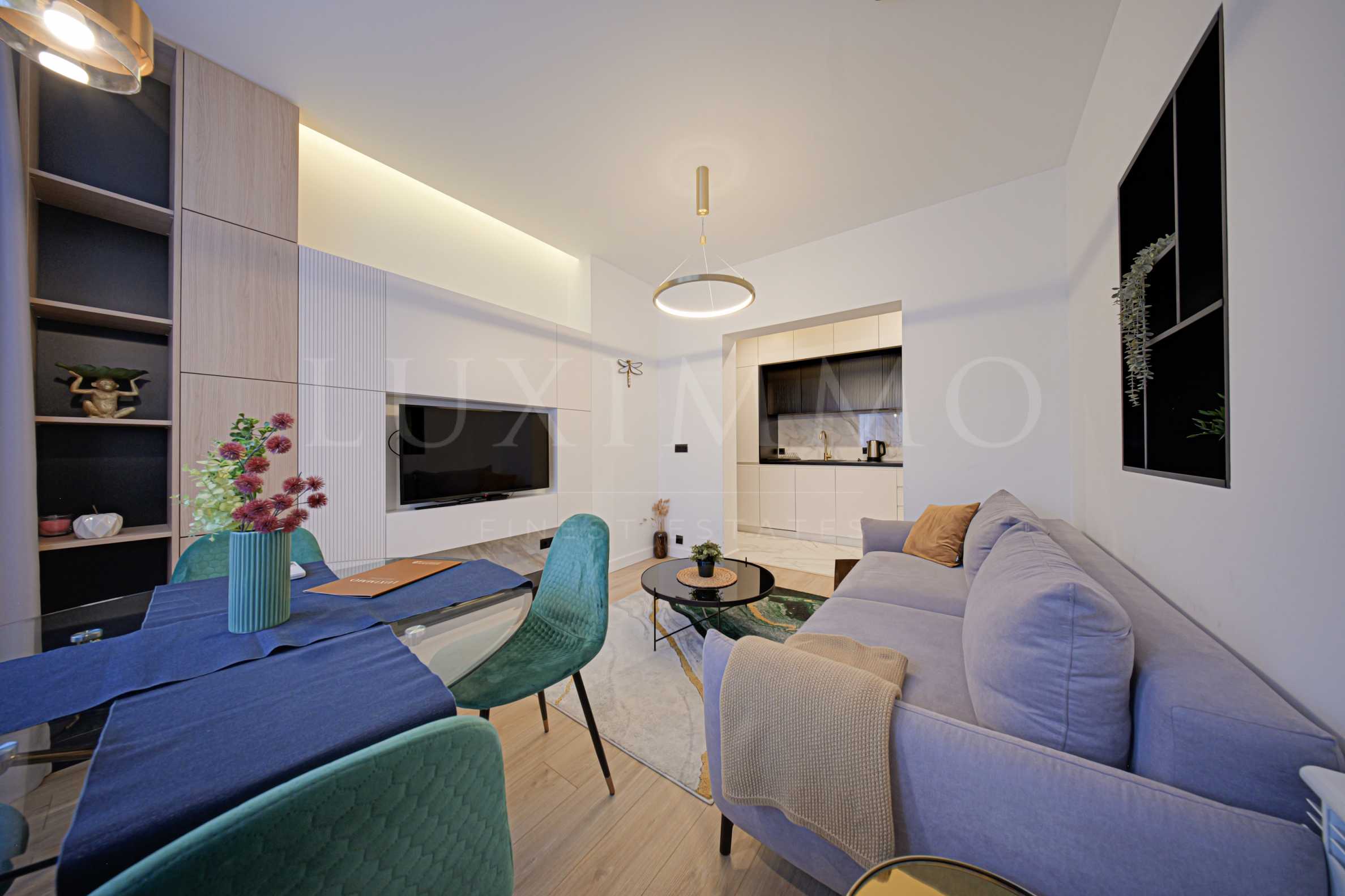 Апартаментът е напълно обзаведен и оборудван до най-малкия детайл, осигуряващ комфорт и удобство.