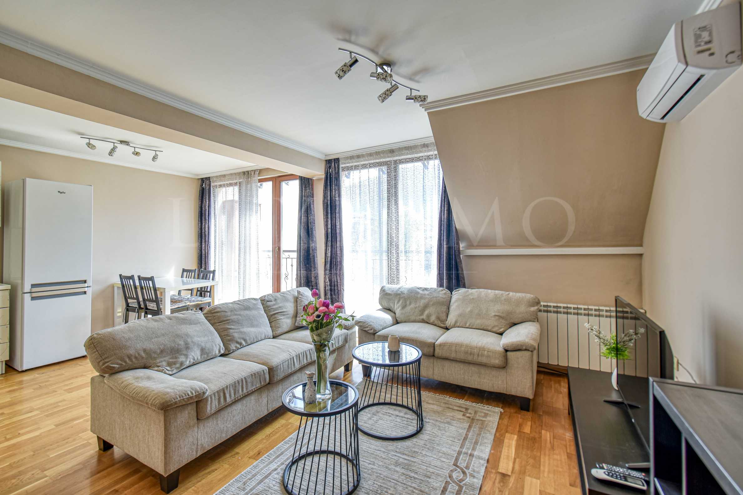 Представяме Ви тристаен мезонет в комплекс от 2009 година, който се отличава с професионална охрана и красива, поддържана градина, създаваща усещане за комфорт и сигурност. В него се намира и луксозният ресторант ПРОЯ, който предлага изключителна обстановка и вкусна кухня. От терасите на мезонета се разкриват впечатляващи гледки към планината Витоша и столицата София.