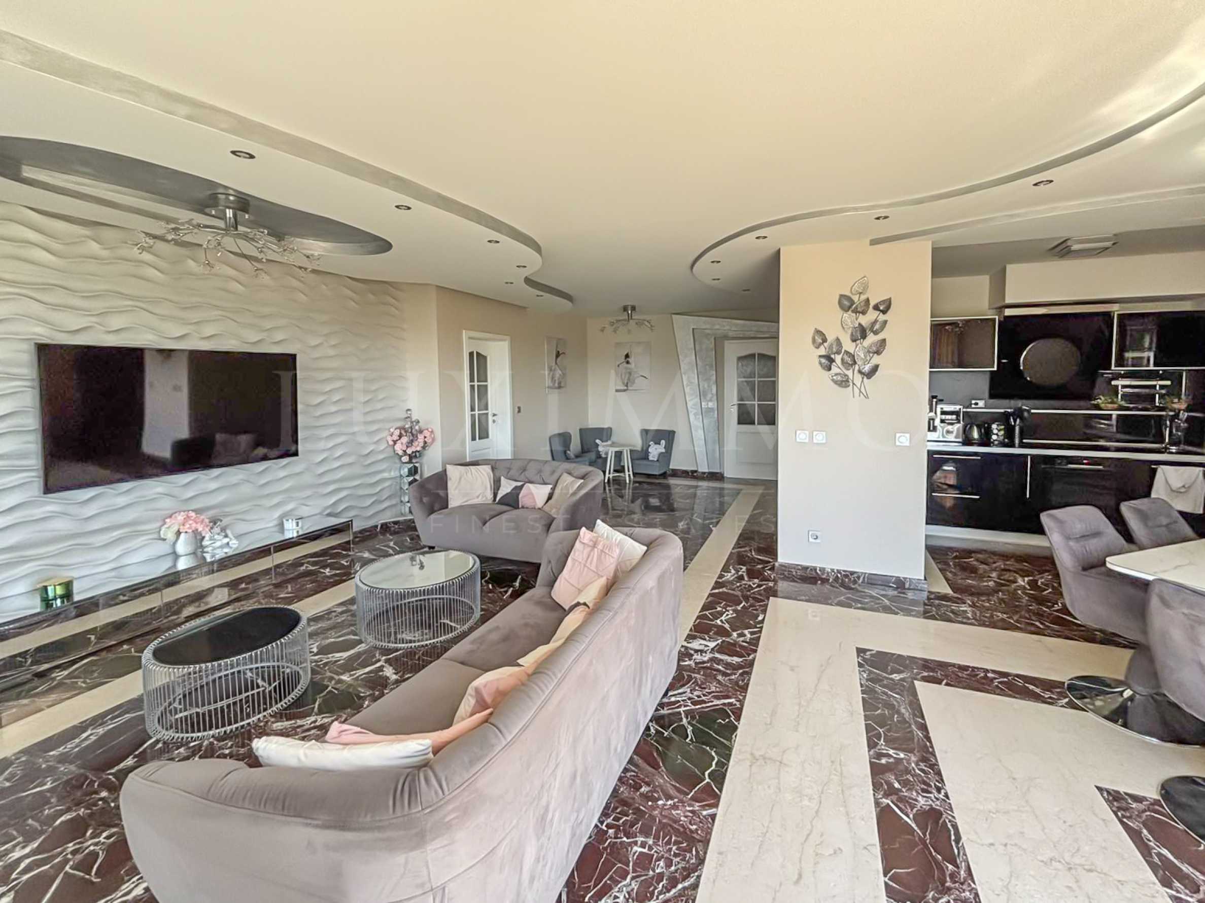 Апартаментът е с площ от 136 кв.м, които са разпределени както следва: Просторна дневна от 45 кв.м, с френски прозорци и тераса от 6 кв.м, откриваща панорамна гледка; Родителска спалня, разполагаща със собствена баня, оборудвана с хидромасажна вана; Детска стая, обзаведена с персонализирано двуетажно легло и имаща възможност за промени в интериора при дългосрочен договор. Жилището включва още втора баня, коридор с голям гардероб и допълнително складово помещение извън апартамента, на същия етаж.