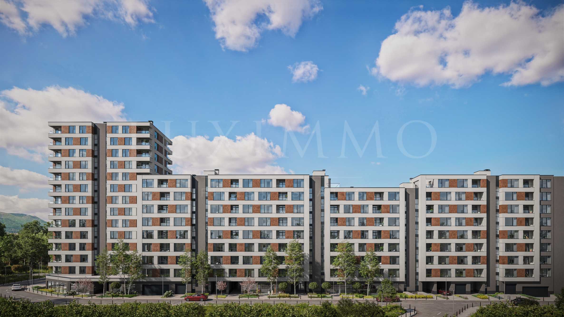 • Фасадата е решена с висококачествени материали – вентилируема керамична облицовка, топлоизолация от EPS и минерална мазилка, които осигуряват защита и стилна визия.