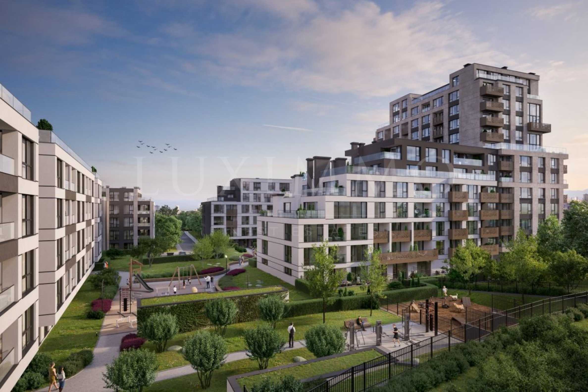 Комплексът предлага голям озеленен двор, детска площадка и атрактивна спортна станция с разнообразие от упражнения.