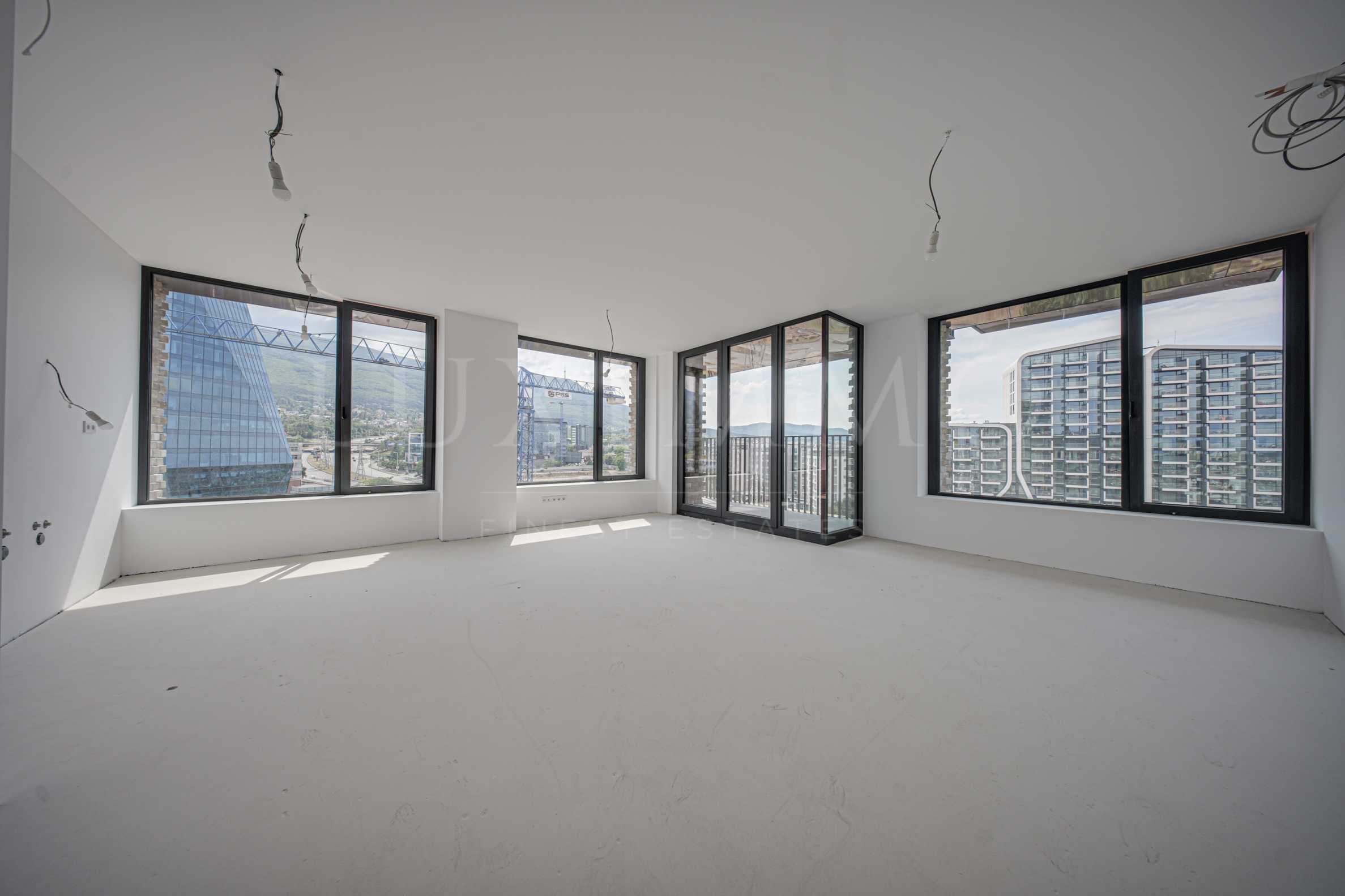 Апартаментът със застроена площ от 129.70 кв.м се намира на 10-ти етаж. Продава се качествено завършен по БДС, като допълнително има опция за дизайнерско завършване на имота. Състои се от антре, дневна с кухня, тераса с панорамна гледка към Витоша и града, две спални и две бани с тоалетни. Отоплението е на газ.