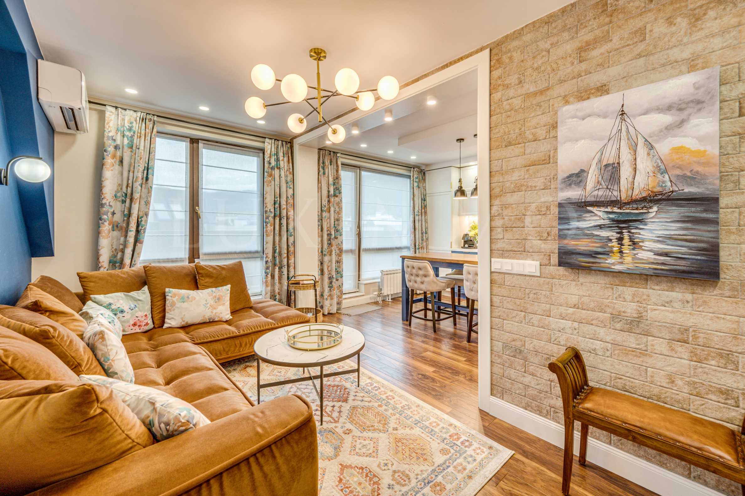 Представяме Ви не просто апартамент, а истински дом – изпълнен с уют, светлина и усещане за топлина. Жилището е завършено по индивидуален проект с внимание към всеки детайл. В интериора преобладават топли цветове и естествени материали, създаващи комфорт и спокойствие.