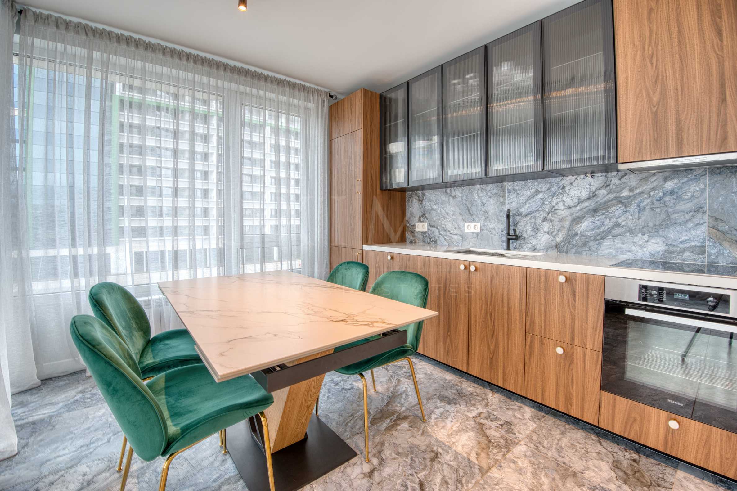 Жилището се намира в нова, престижна сграда, отличаващ се с характерна архитектура, съвременен дизайн и безкомпромисно качество на изпълнение. Апартаментът е с площ от 105 кв.м, разположен на четвърти етаж, и впечатлява с усещане за простор, светлина и изчистена естетика.