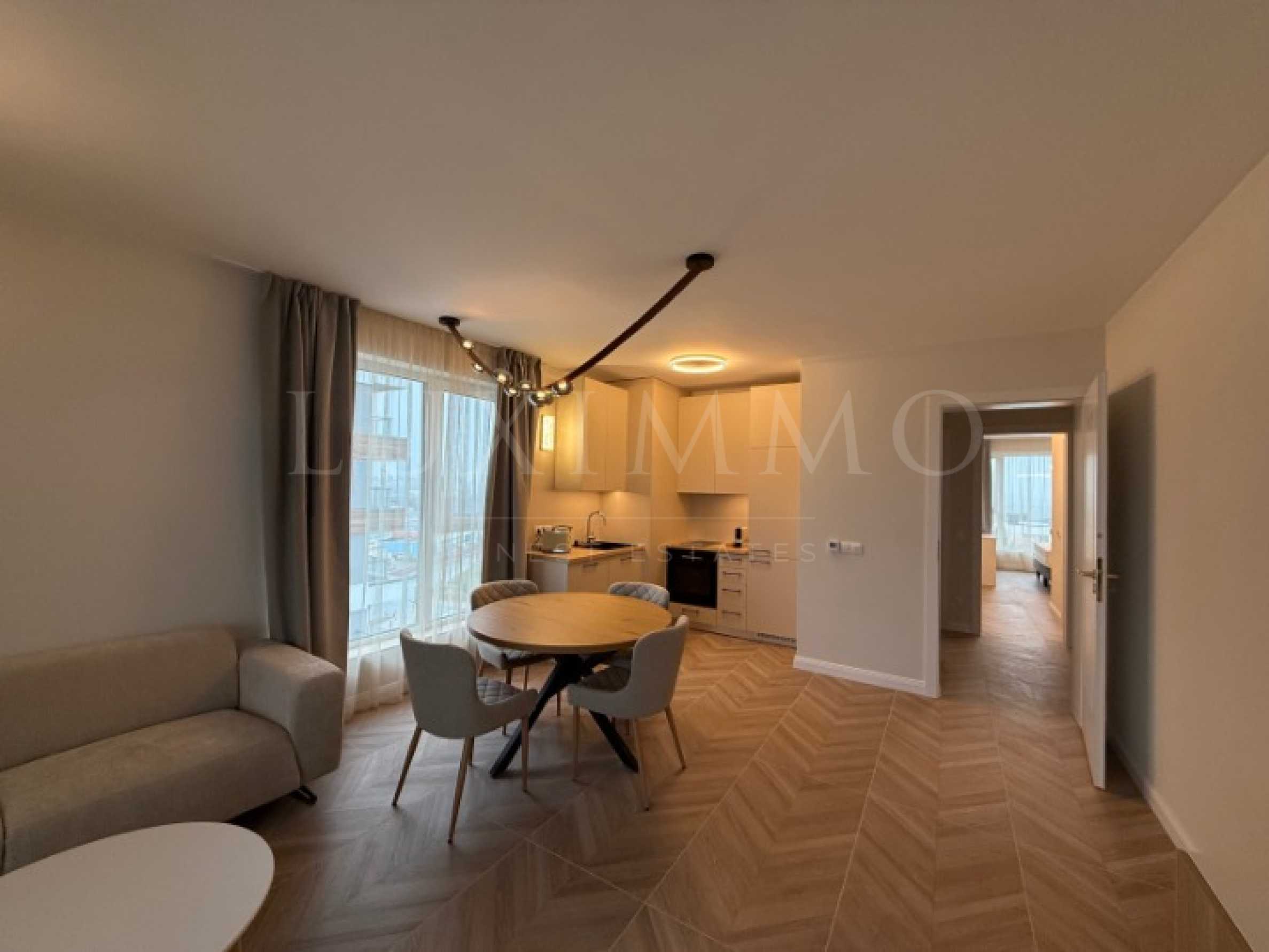 Апартаментът е чисто нов, обзаведен по дизайнерски проект с висококачествени мебели и електроуреди Bosch от последно поколение.