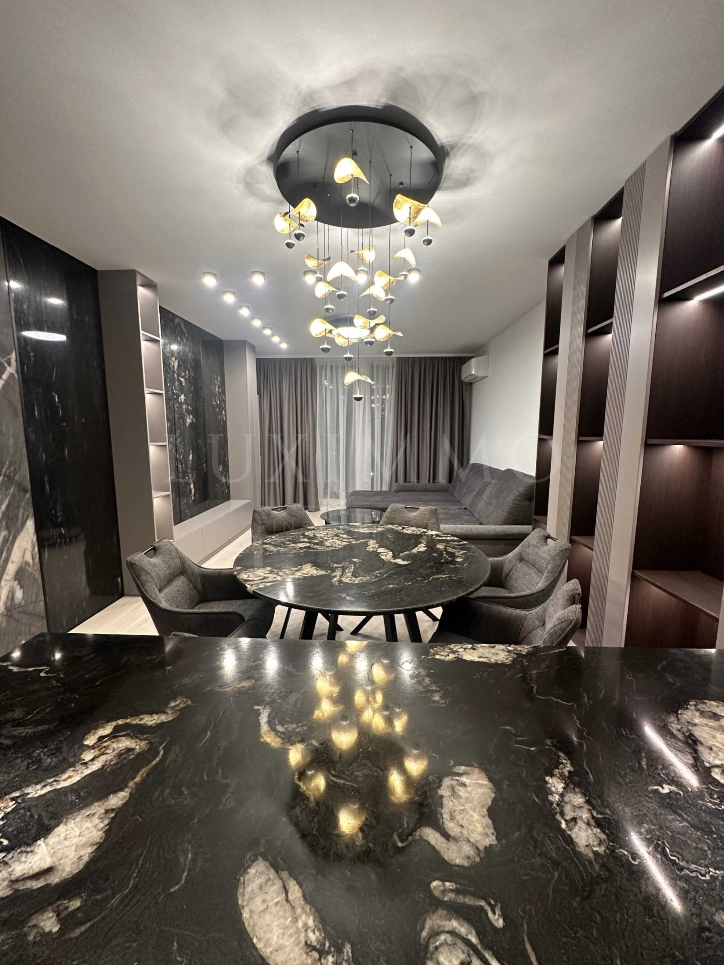 Имотът предлага висок клас довършителни работи и първокласен дизайнерски интериор, впечатляващ с модерна визия, просторни помещения и премиум изпълнение. Намира се на 2-ри етаж и има обща площ 128 кв.м. Отоплението е с климатична система.
