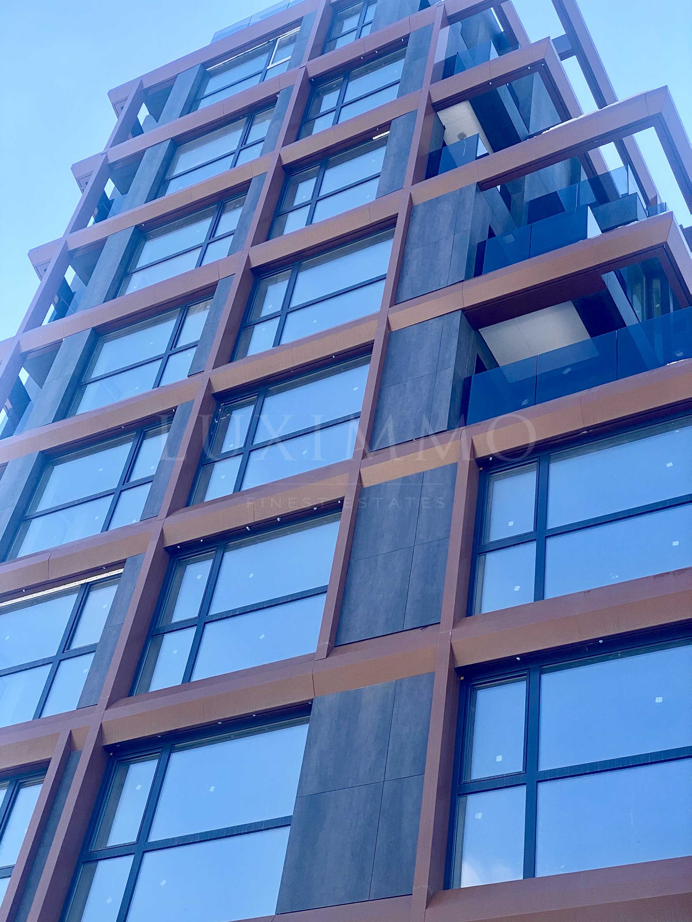 • Сградата е с фасада комбинация от еталбонд и Laminam - синтерован камък, с вентилируема топлоизолация 10 см;