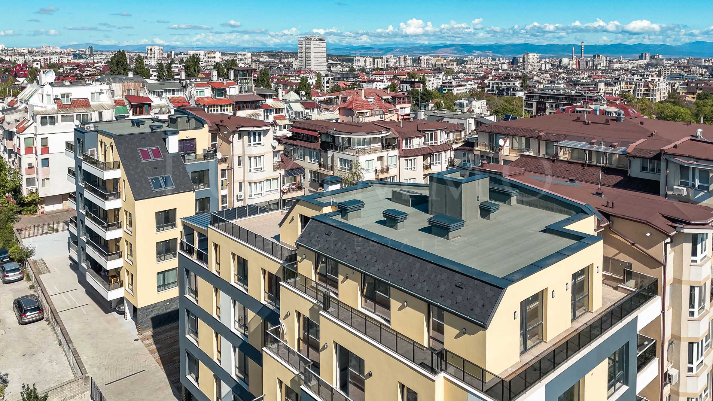Имотът разполага с просторна тераса, от която се откриват красиви панорамни гледки към Витоша и София. Терасата предлага възможност за обособяване на уютна зона за отдих – идеално място за сутрешно кафе, вечеря на открито или релакс след дълъг ден.