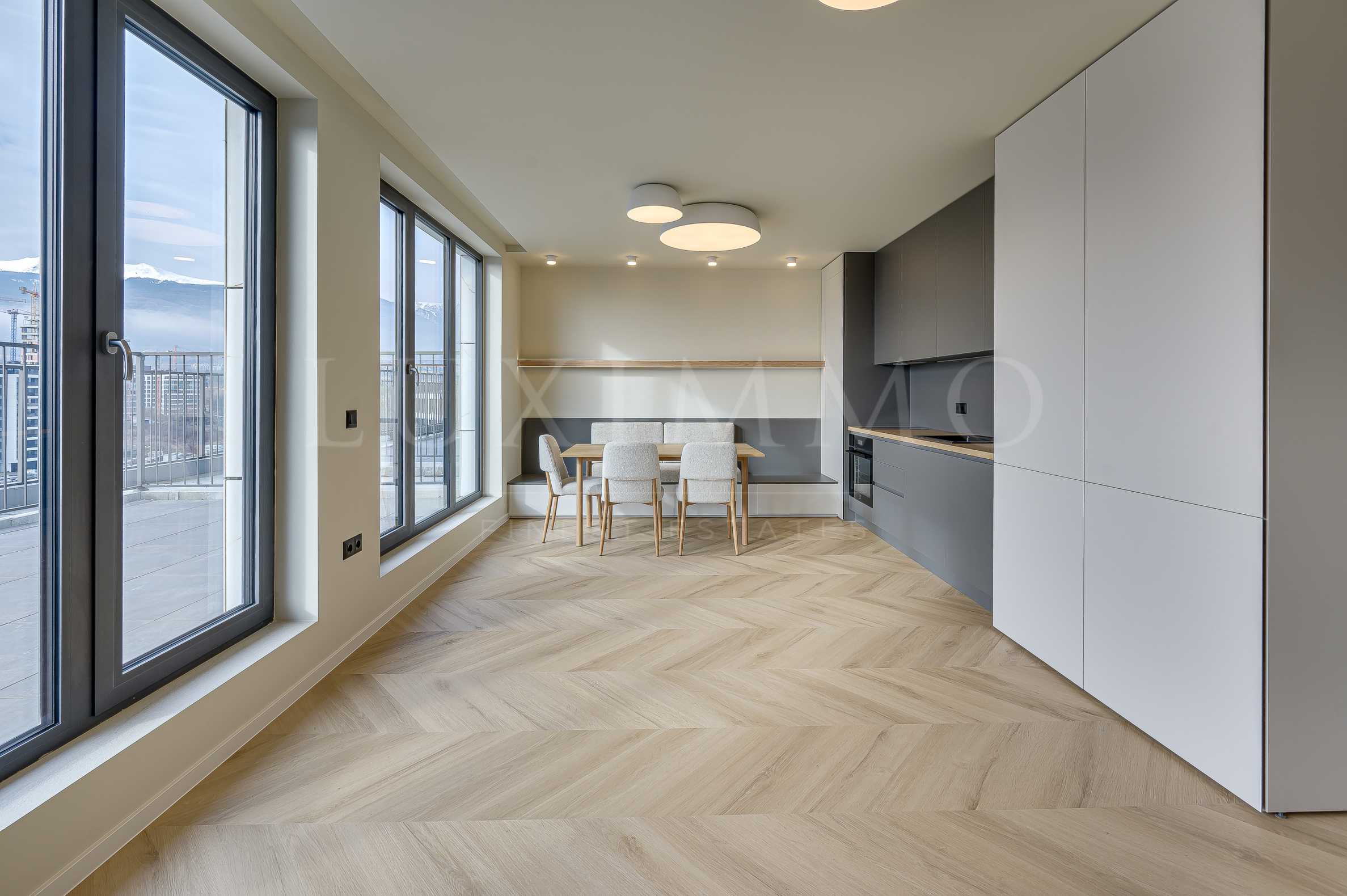 Апартаментът е реализиран по индивидуален дизайнерски проект с безкомпромисно внимание към детайла, напълно завършен и готов за нанасяне.