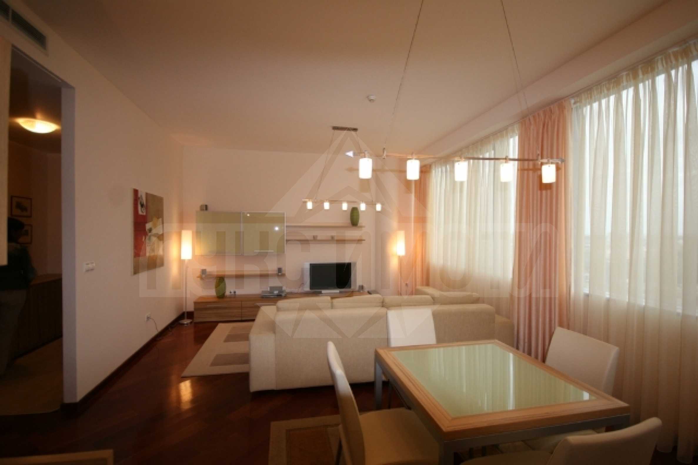 Луксозно напълно обзаведен апартамент от 130 кв.м., състоящ се от антре, спалня, работен кабинет, дневна и две бани с тоалетна, находящ се в представителната бизнес сграда ‘БЕЛЛИССИМО’, номинирана за сграда на 2006г. Местоположението е престижно и комуникативно, а достъпът - лесен - сградата се намира на бул."България", в близост до Билла и на 10 минути от центъра на София.