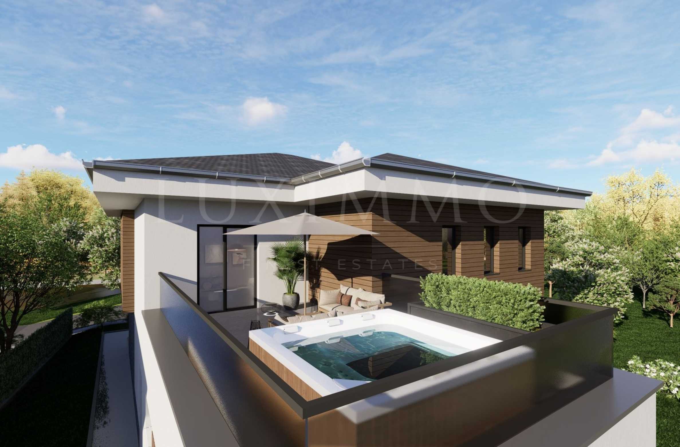 Жилищната концепция е подчинена на комфорта. Богатата дневна зона плавно прелива към веранда и двор, докато на последното ниво е разположена покривна тераса с джакузи, директно свързана с частната спалня.