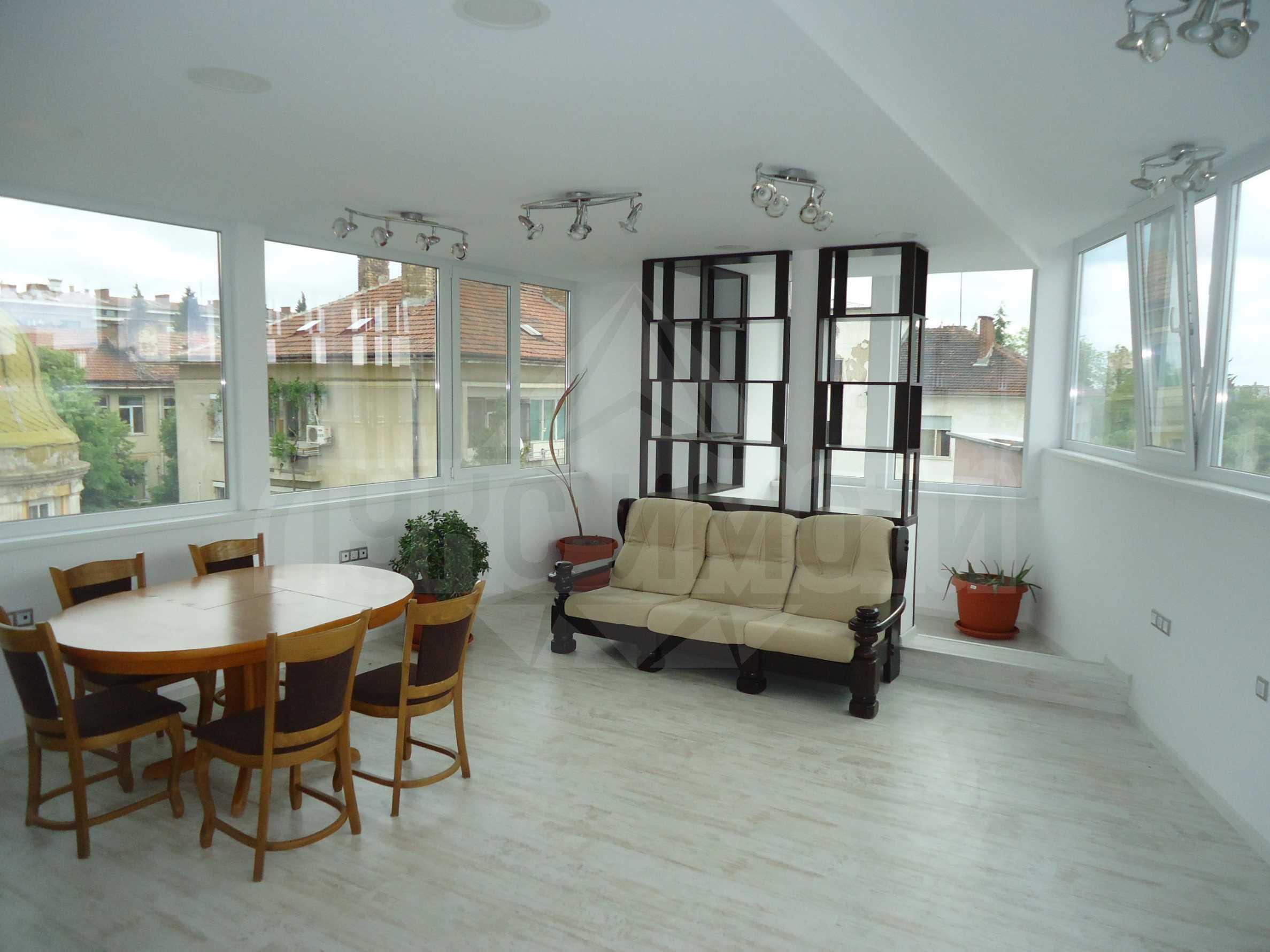 Стените в апартамента са с латексово покритие, подът е с ламиниран паркет, а прозорците са с алуминиева дограма.