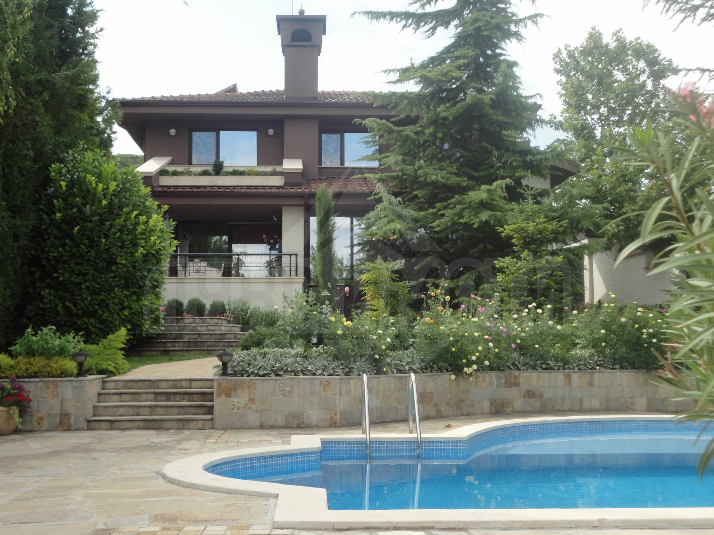 Луксозният имот включва къща с площ 410 кв. м, мазе, което е трансформирано във фитнес зала и сауна, паркинг, гараж, барбекю и градина 1349 кв. м.