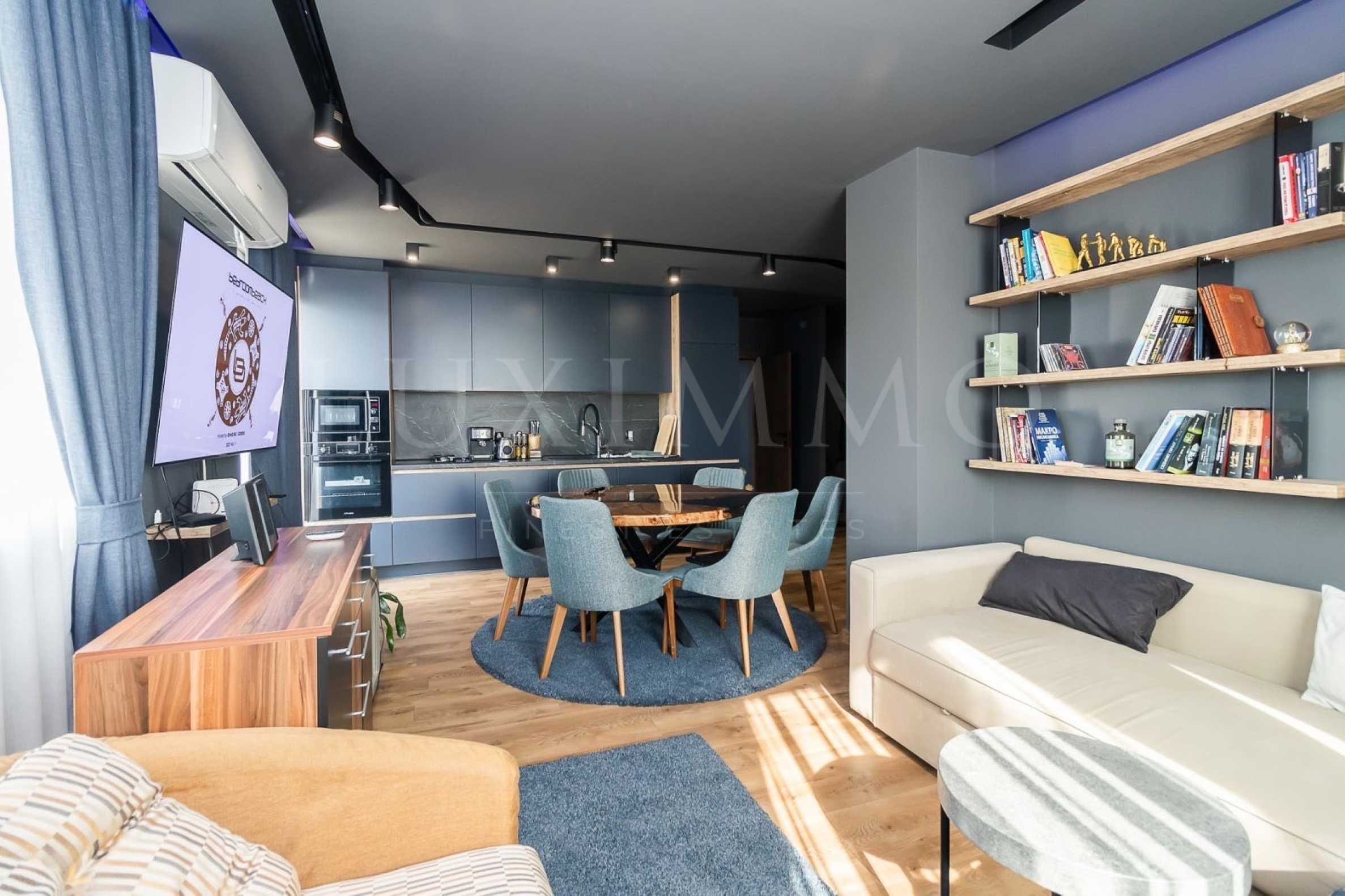 Апартаментът е дизайнерски мебелиран и напълно оборудван, подходящ за голямо семейство.