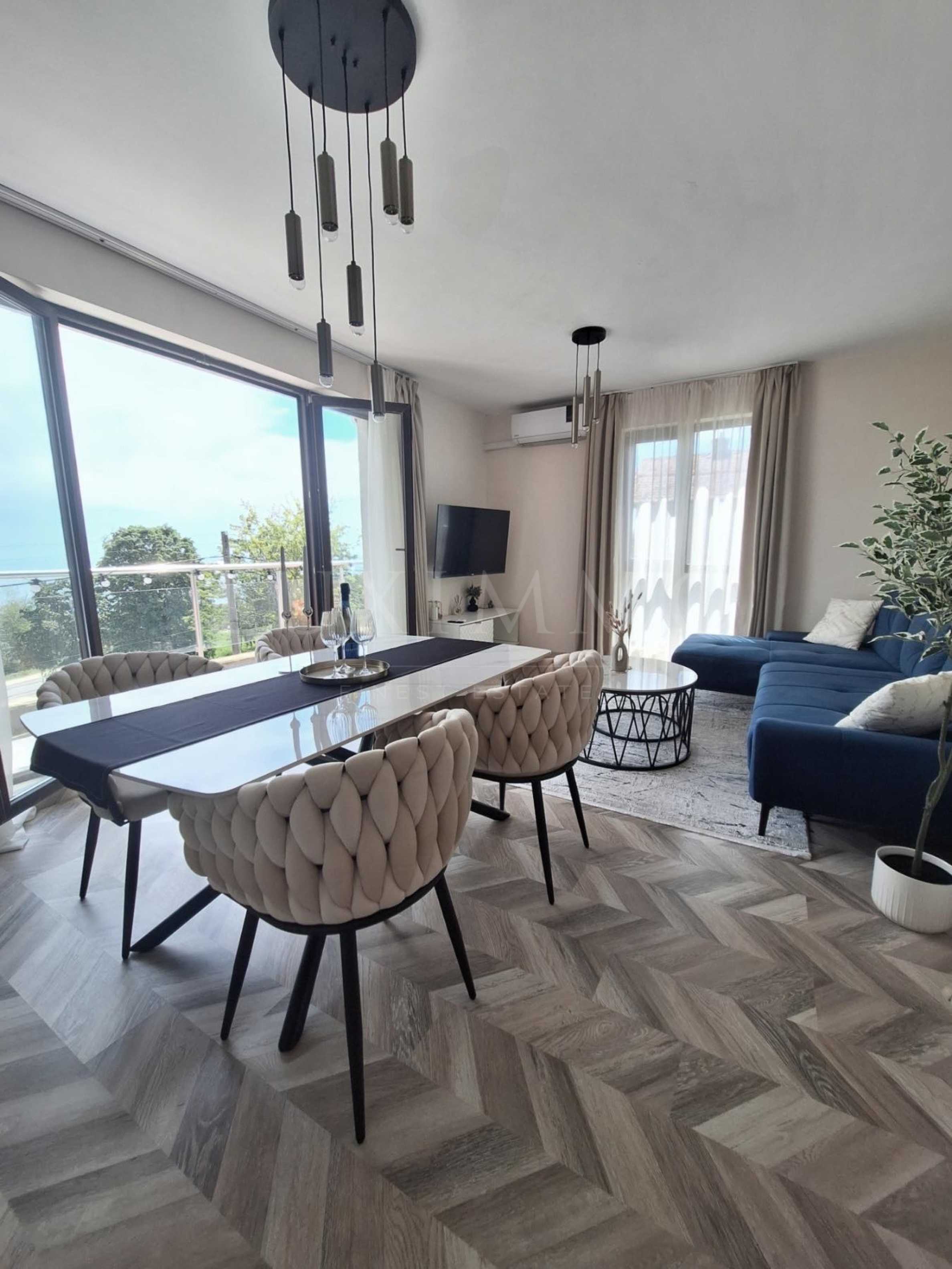 Представяме луксозен двустаен апартамент с морска гледка в нова сграда, в Бяла. Отлична локация в тиха и спокойна зона, на кратко разстояние от плажа и централната част на Бяла.